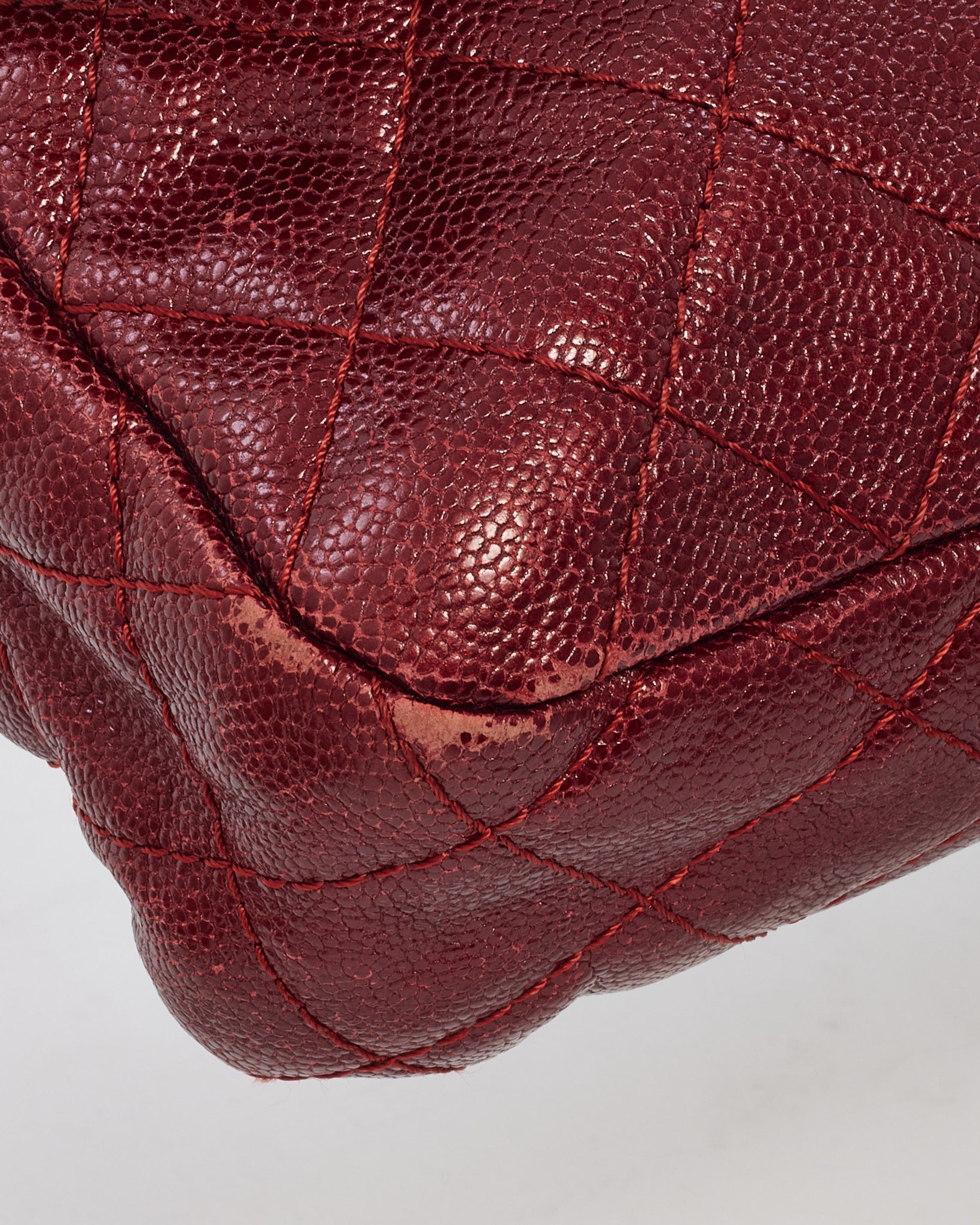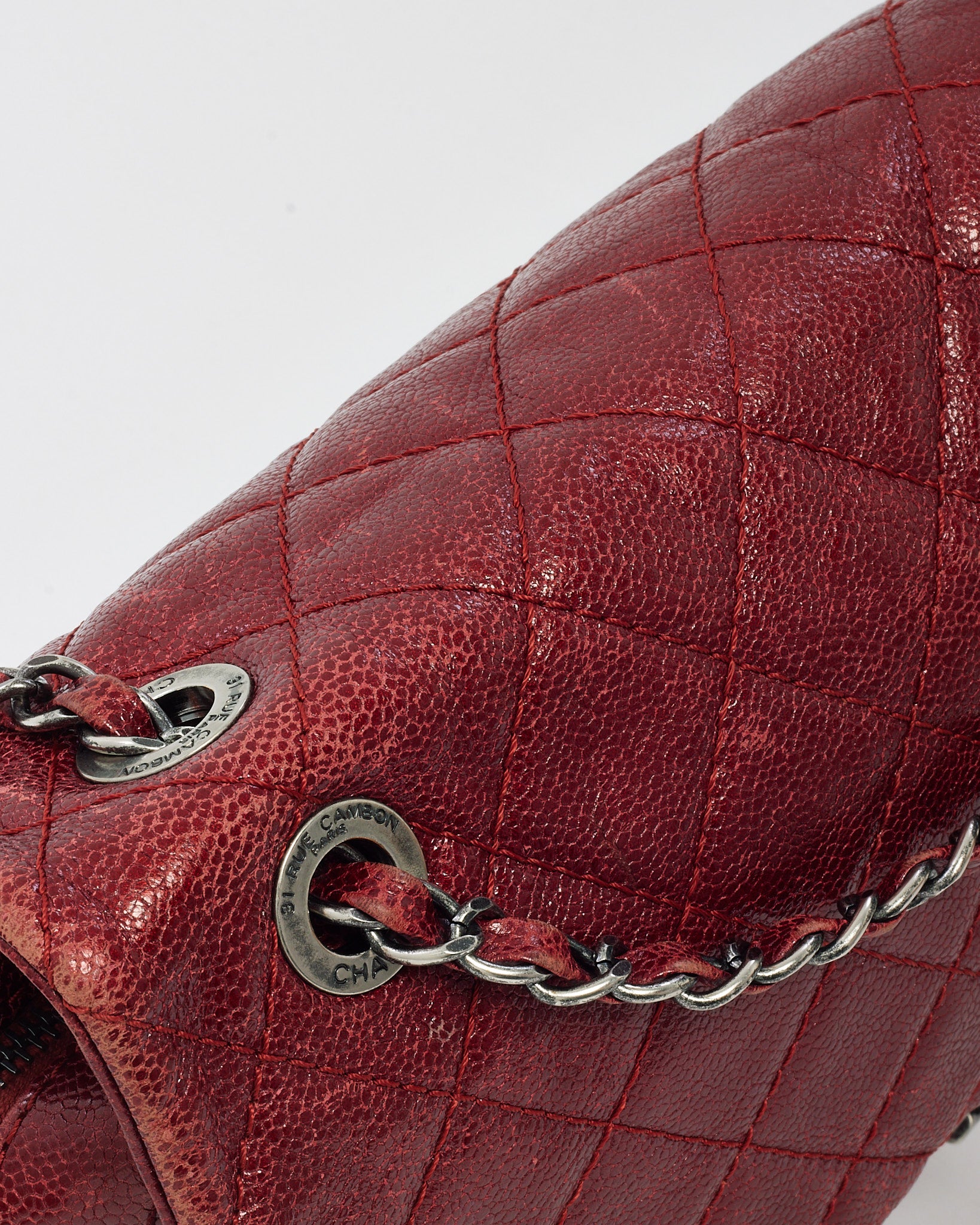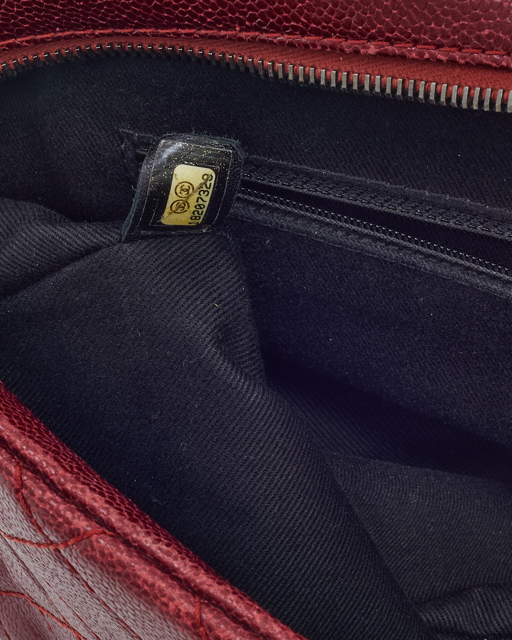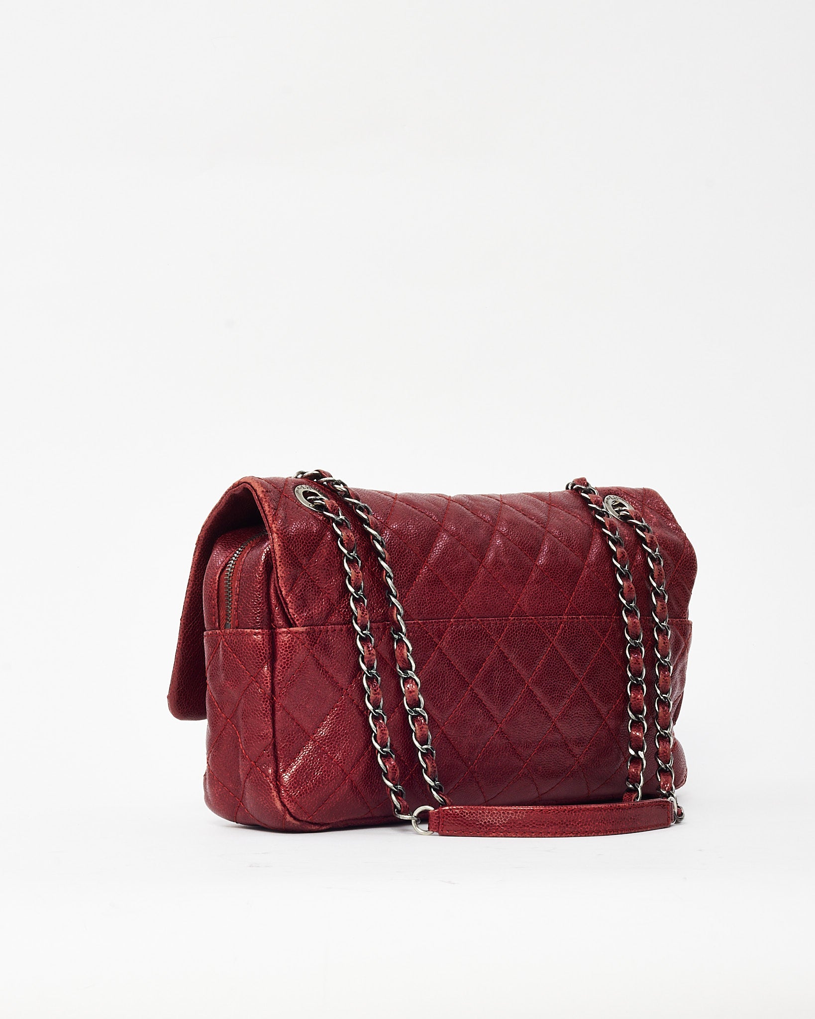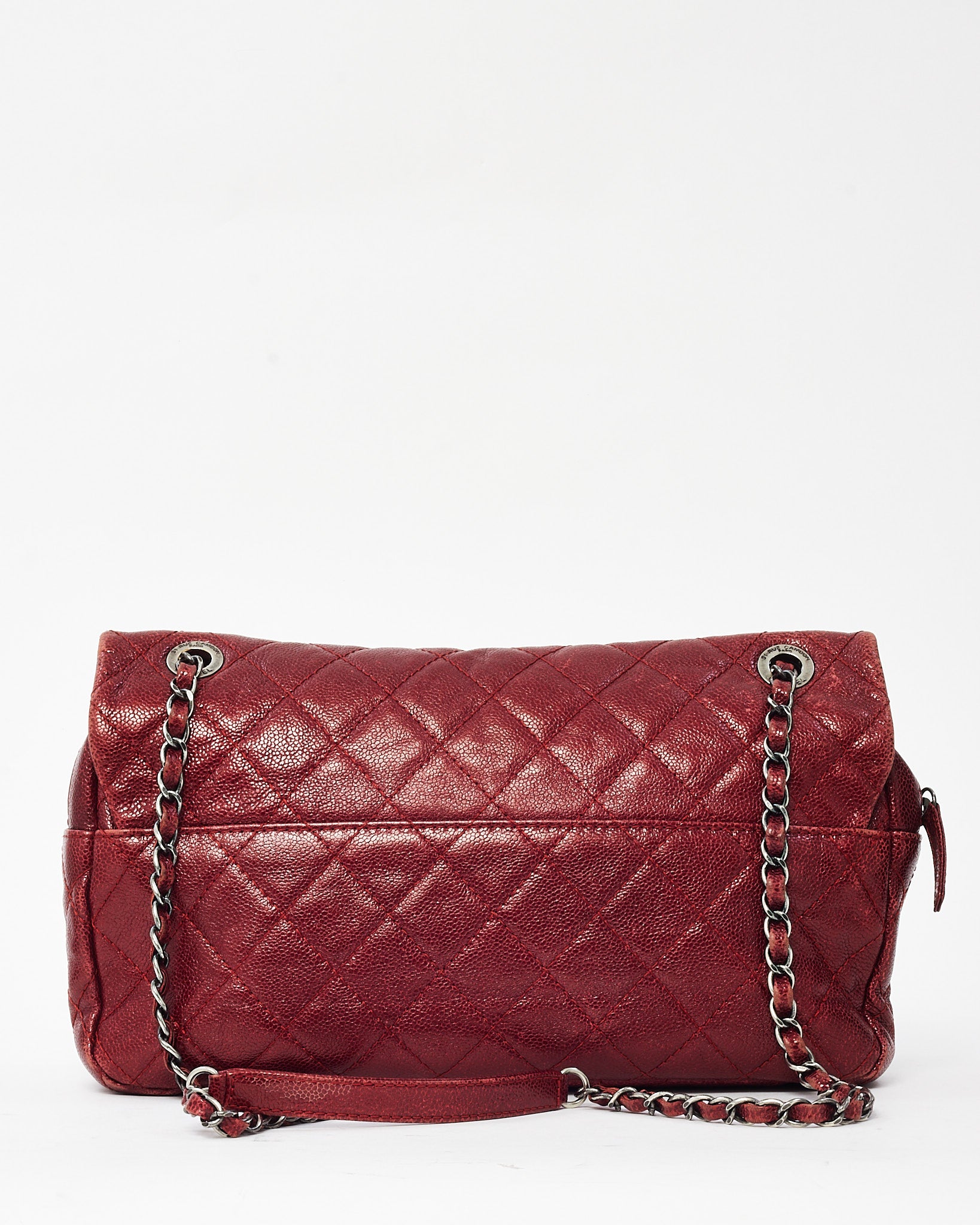 Burgundy Red Quilted Caviar Leather Jumbo Easy Flap Shoulder Bag SHW