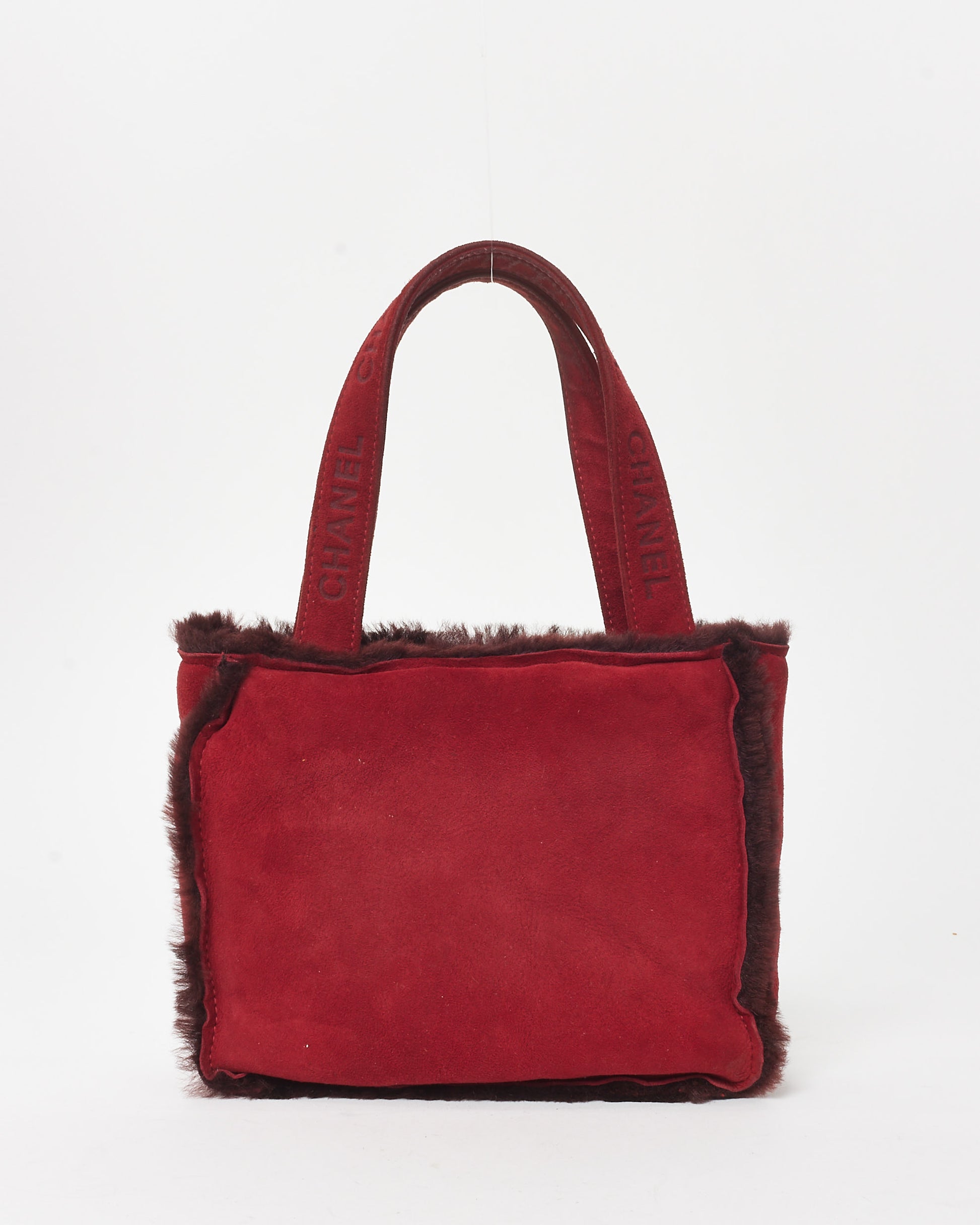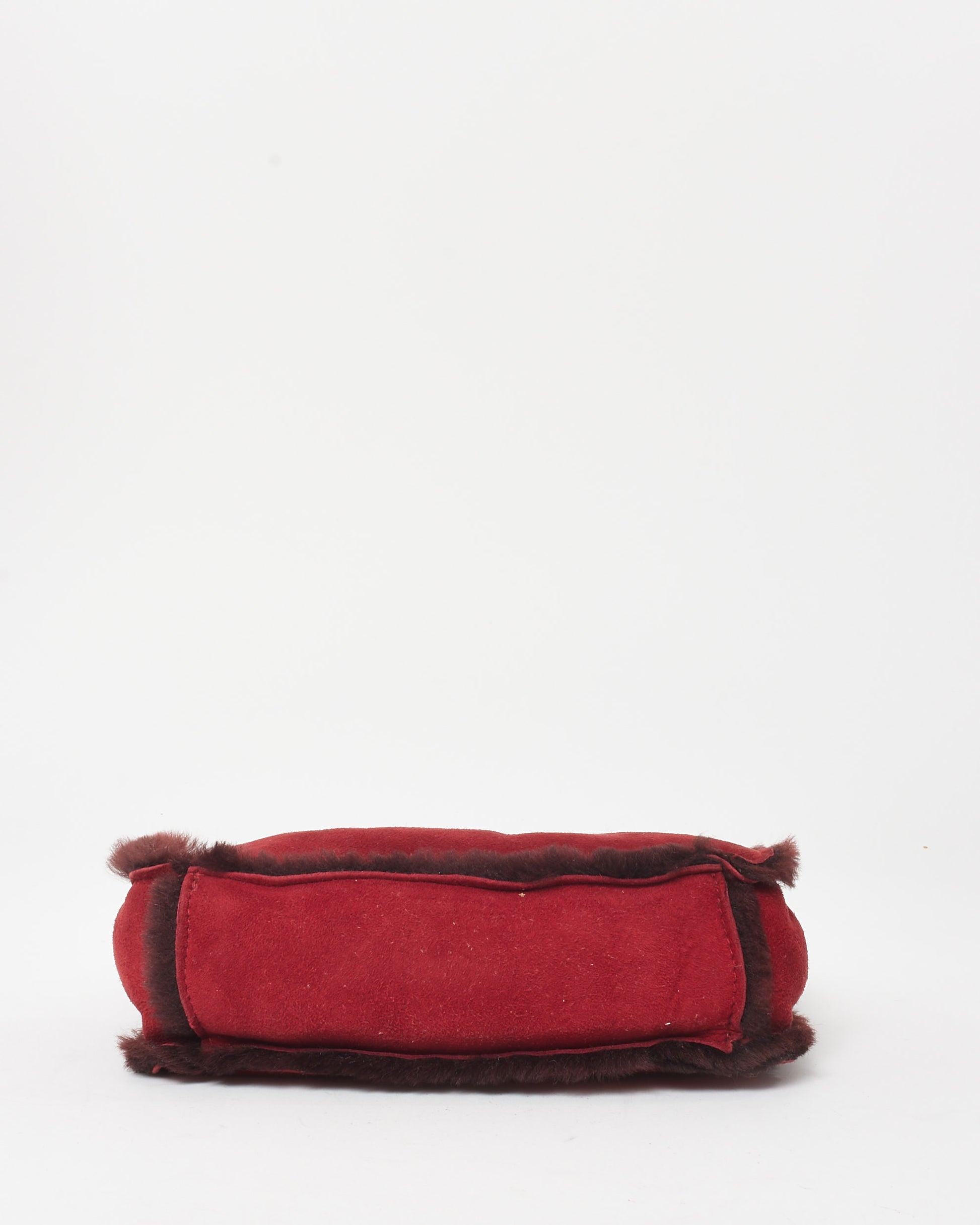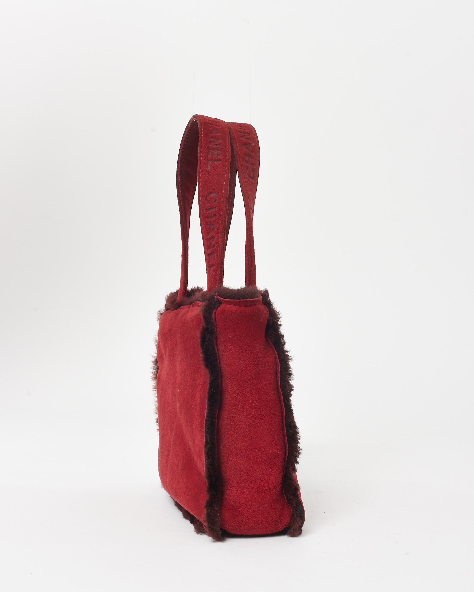 Burgundy Suede & Faux Fur Mini Tote Bag