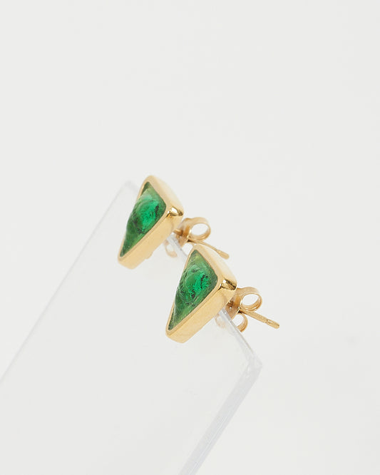 CHANEL CC Gold Tone Logo Pierce Earrings Gold/Green