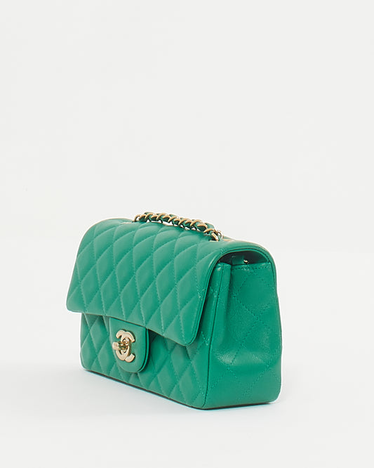Emerald Green Lambskin Mini Rectangular Classic Flap Bag