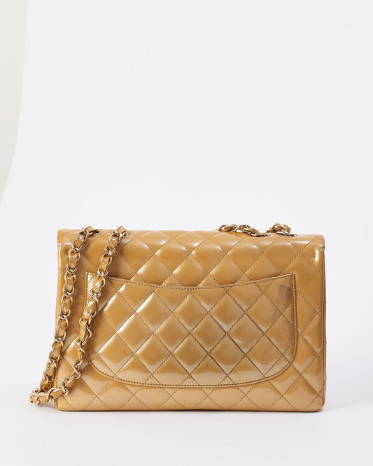 Gold Patent Leather Quilted Jumbo Single Flap Bag