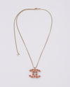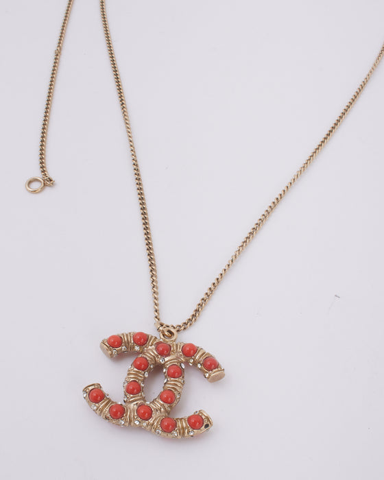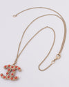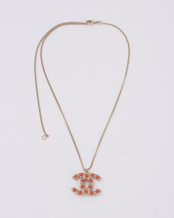 Gold Tone Metal with Coral Beads CC Logo Necklace