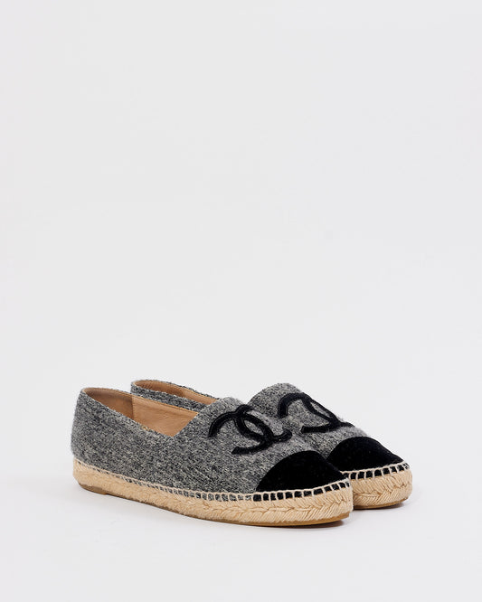 Grey/Black Wool CC Interlocking Logo Espadrilles - 40