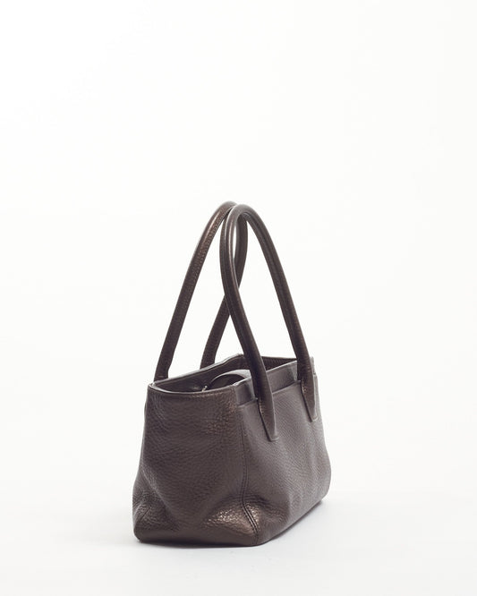 Brown Iridescent Leather East/West Cerf Executive Tote
