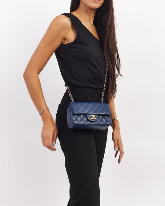 Navy Blue Caviar Leather Mini Classic Rectangular Flap Bag