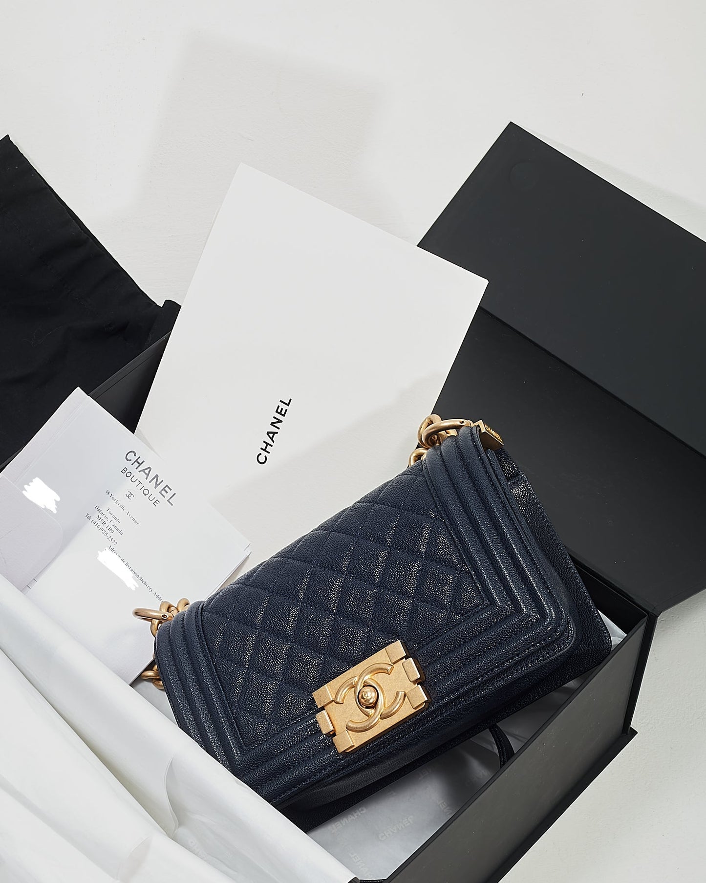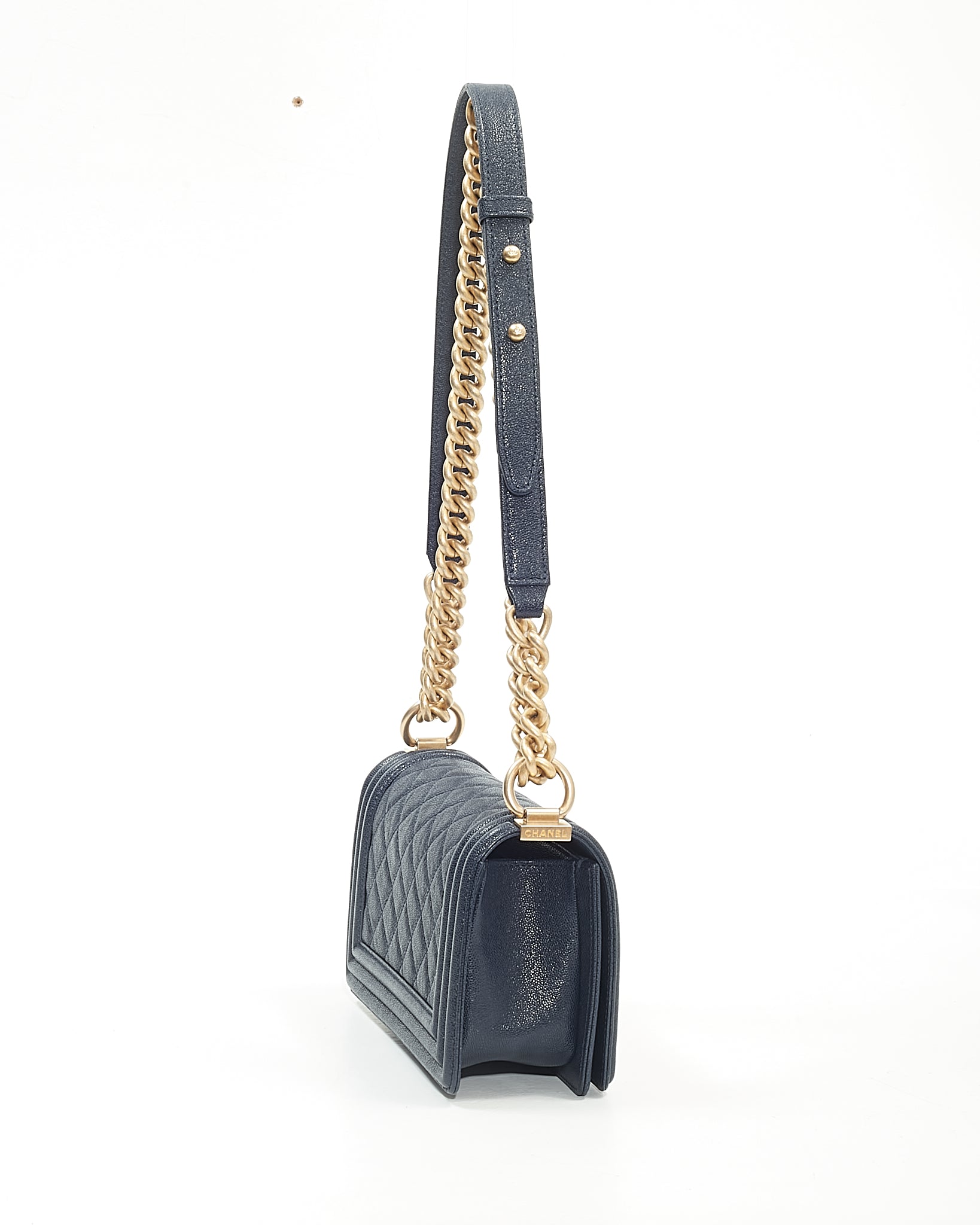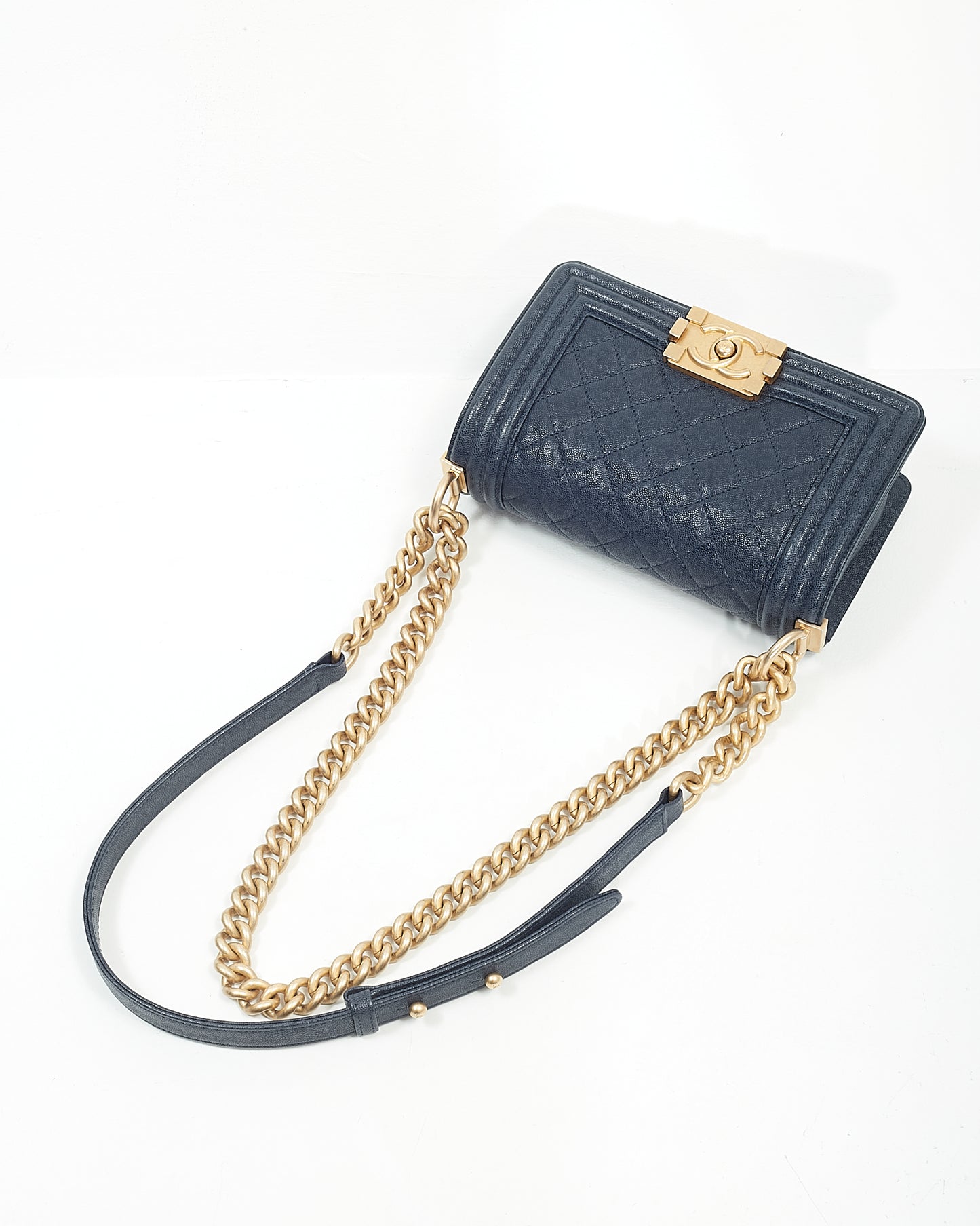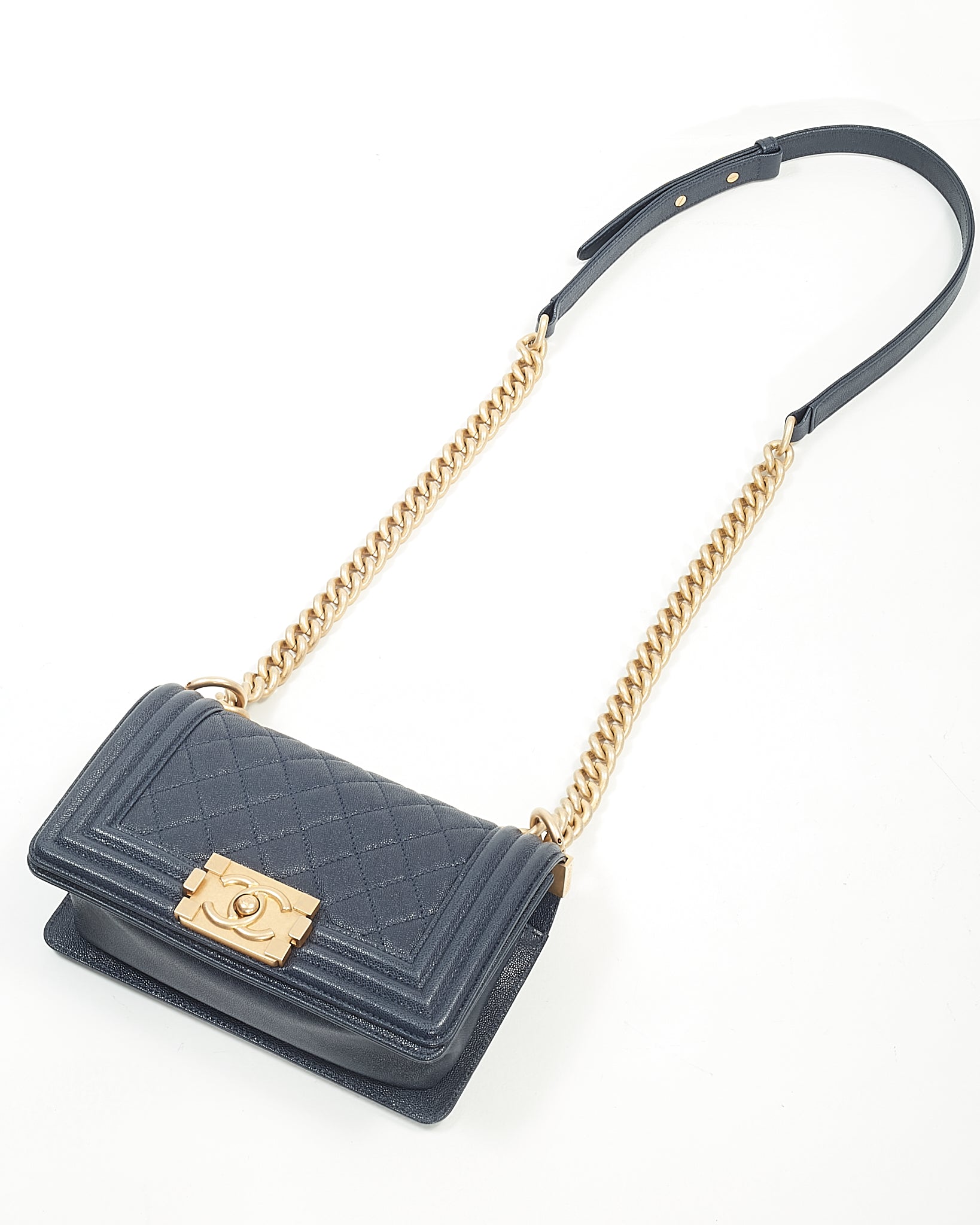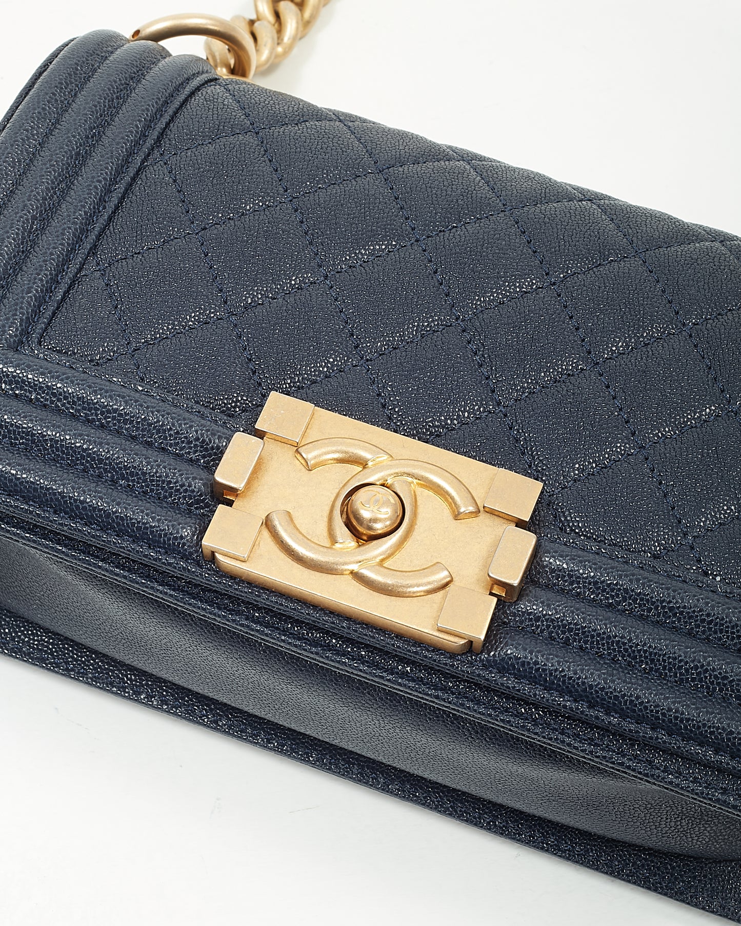 Navy Caviar Small GHW Boy Bag