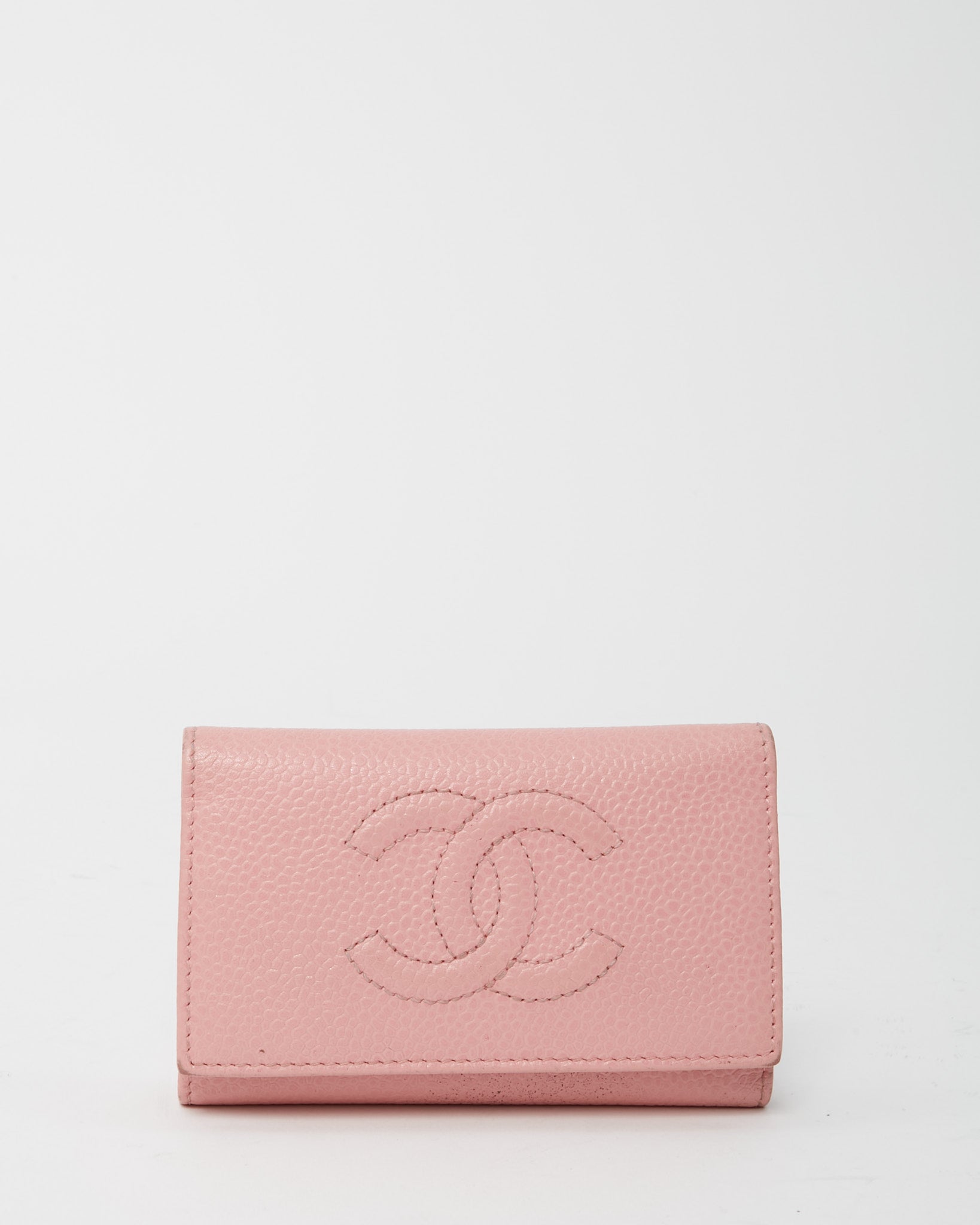 Pink Caviar Leather Timeless Interlocking CC Logo 6 Key Holder