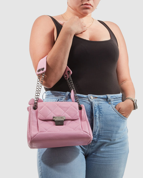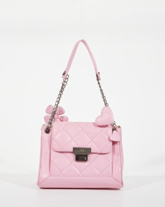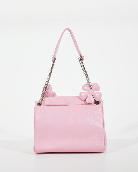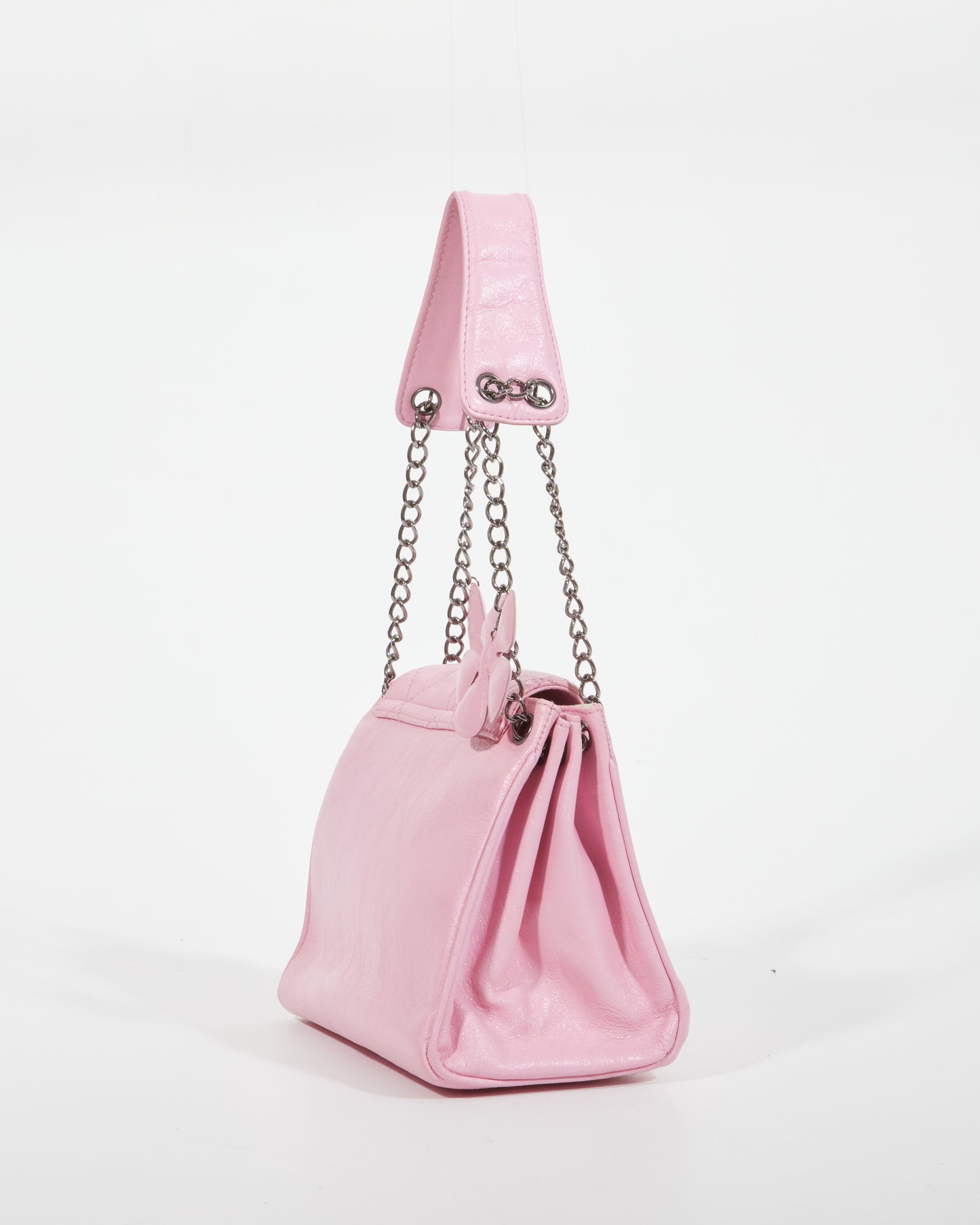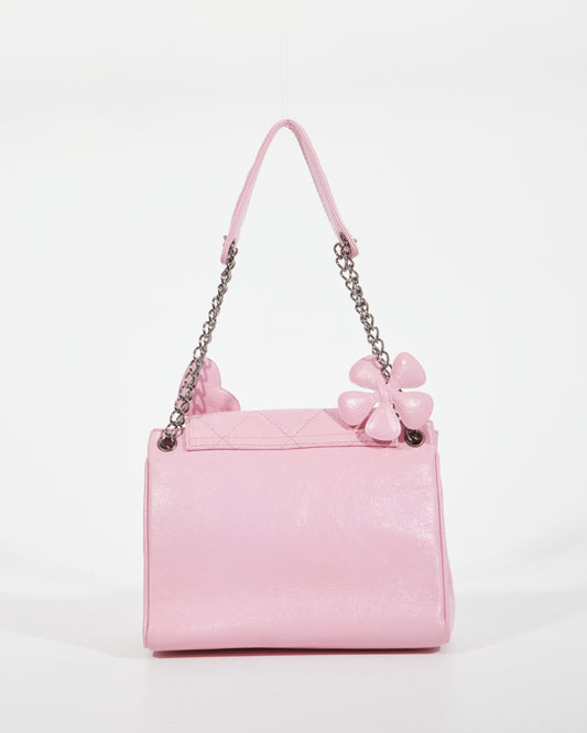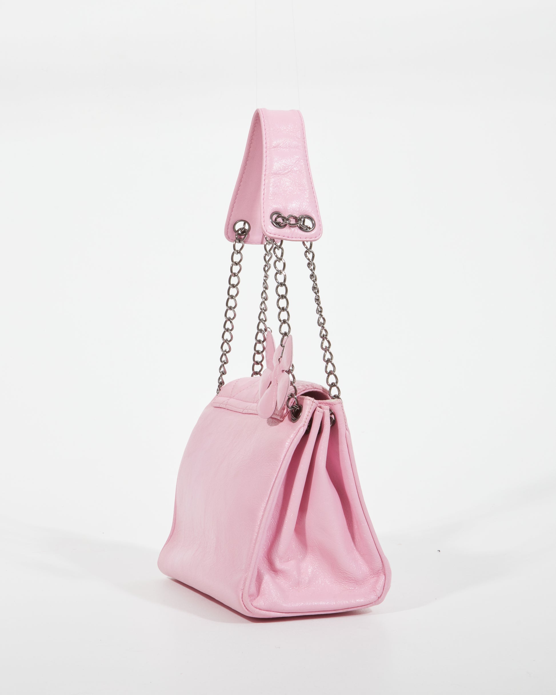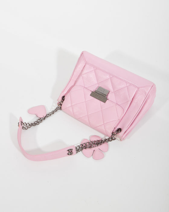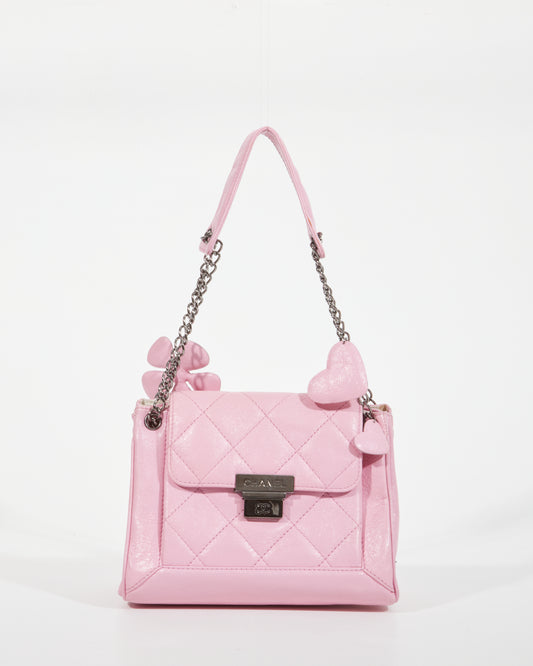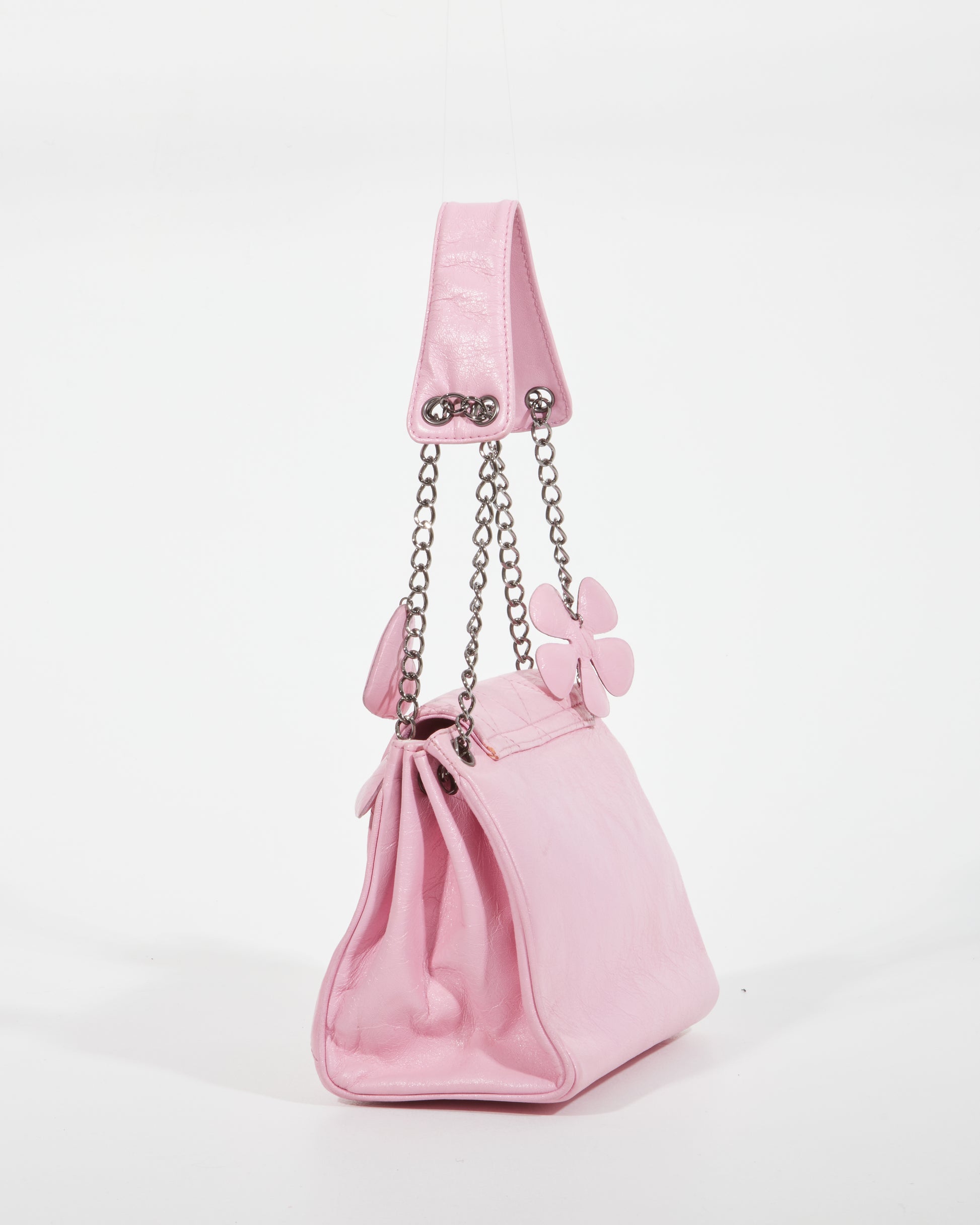 Pink Crinkled Leather 2003 Flower & Heart Shoulder Bag