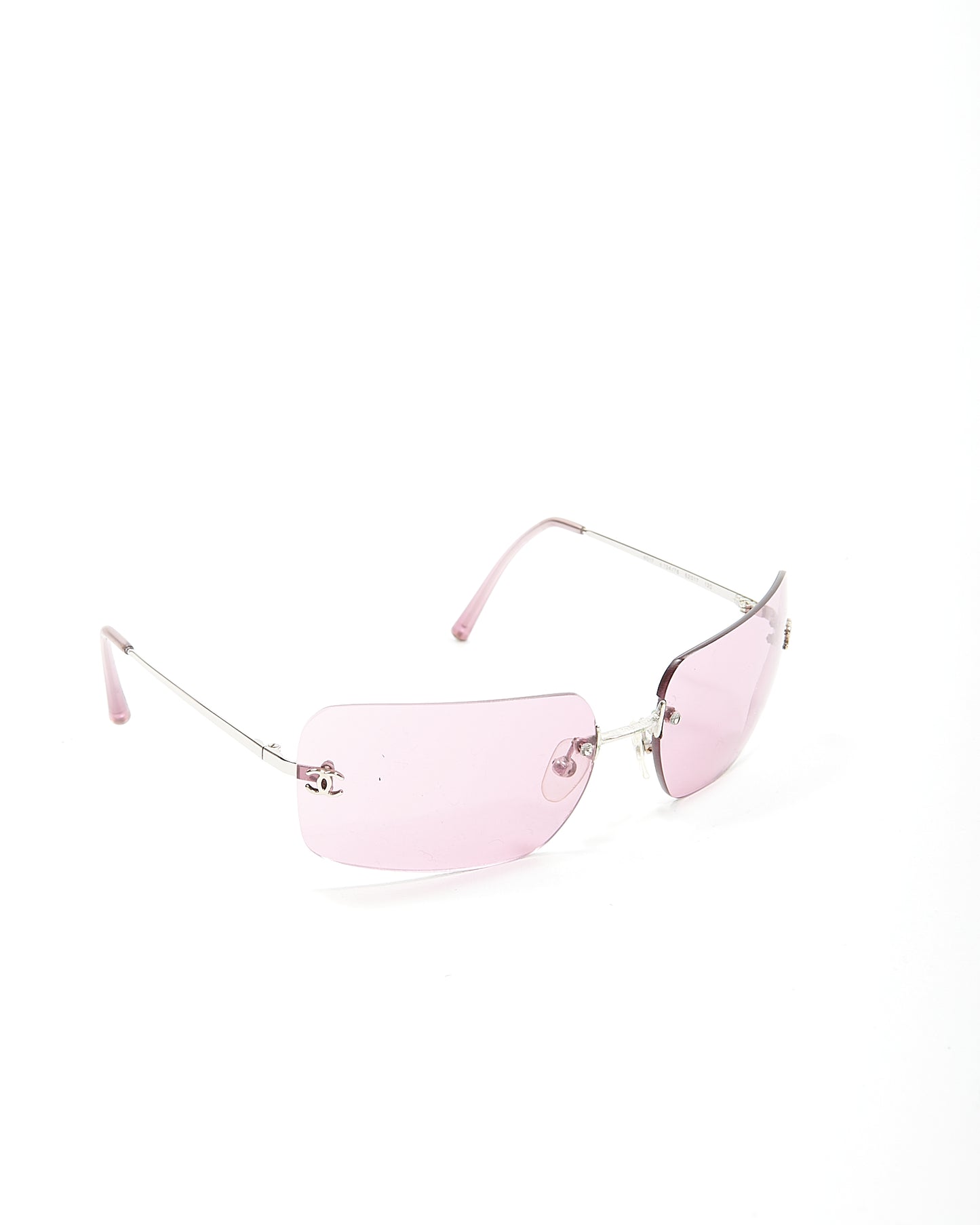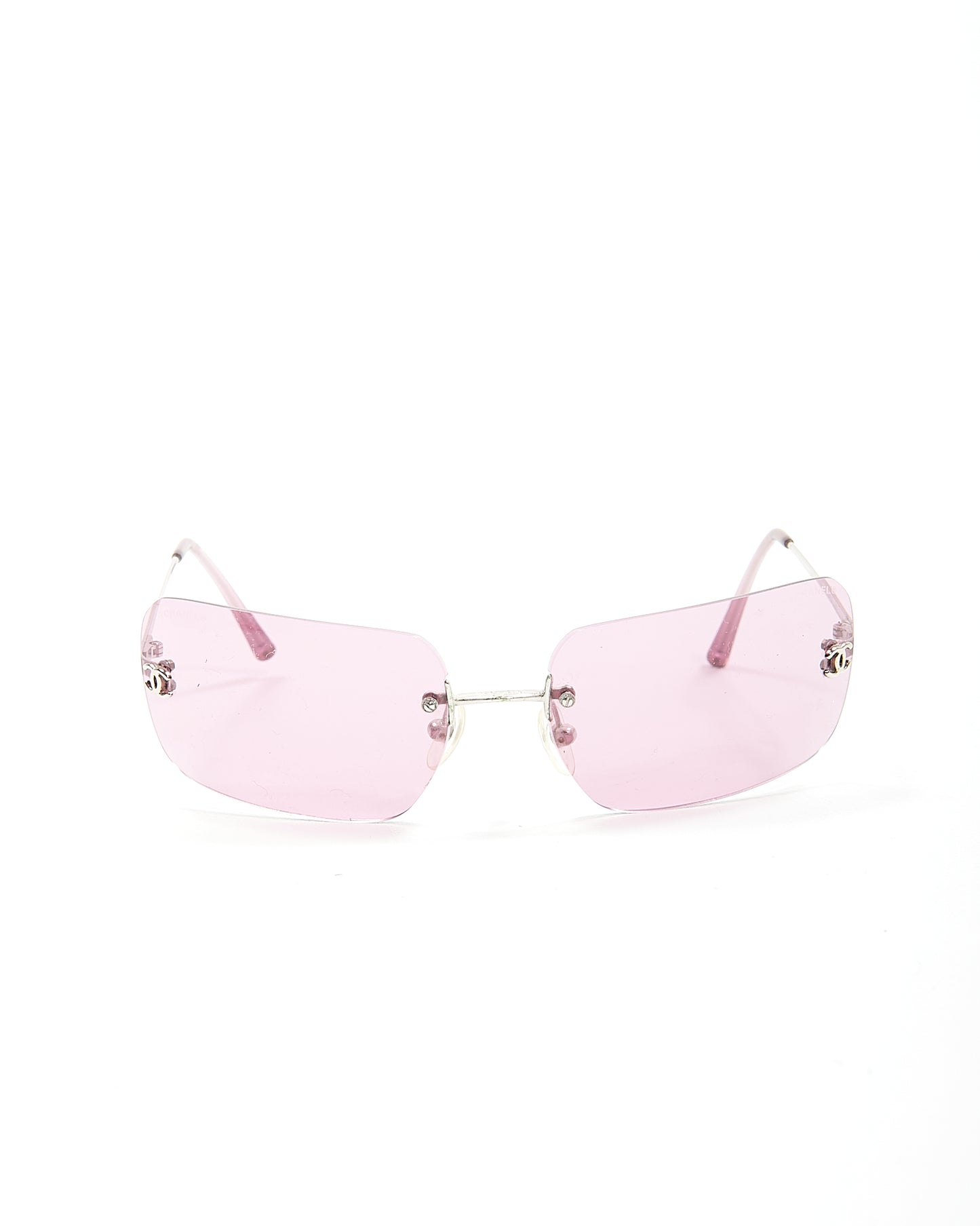 Pink Rectangular Lense CC Logo 4017 Sunglasses