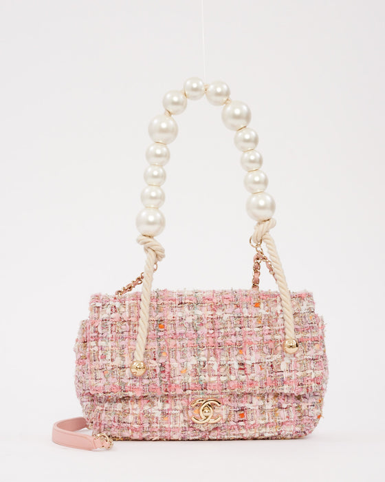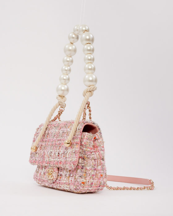 Pink Tweed Pearl By the Sea Collection Flap Bag