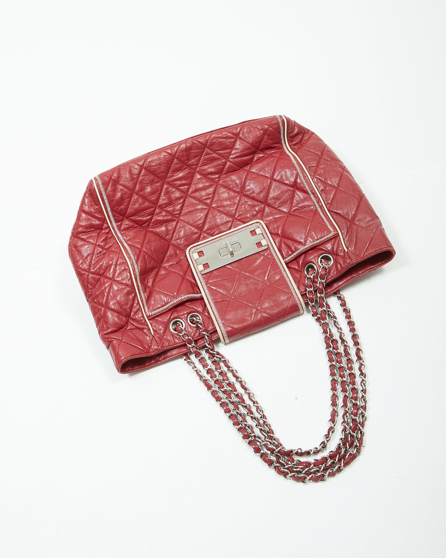 Red Burgundy Quilted Leather East West Reissue Tote