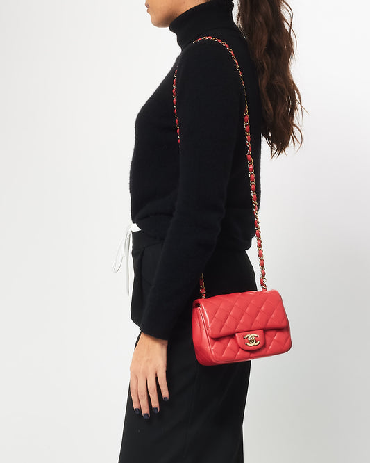 Red/Coral Lambskin CPHW Square Mini Single Flap Bag
