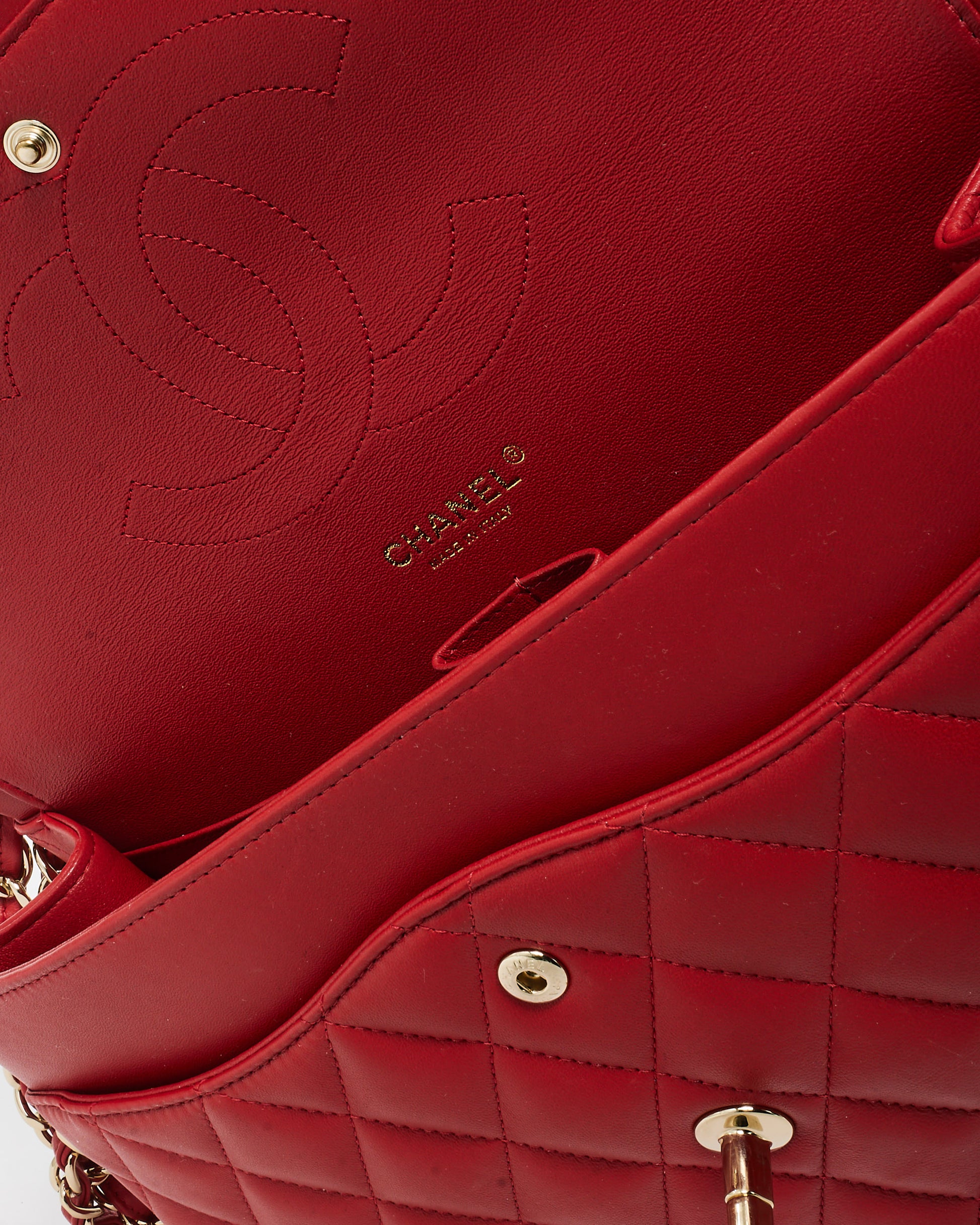 Red Lambskin Leather CPHW Jumbo Classic Double Flap Bag