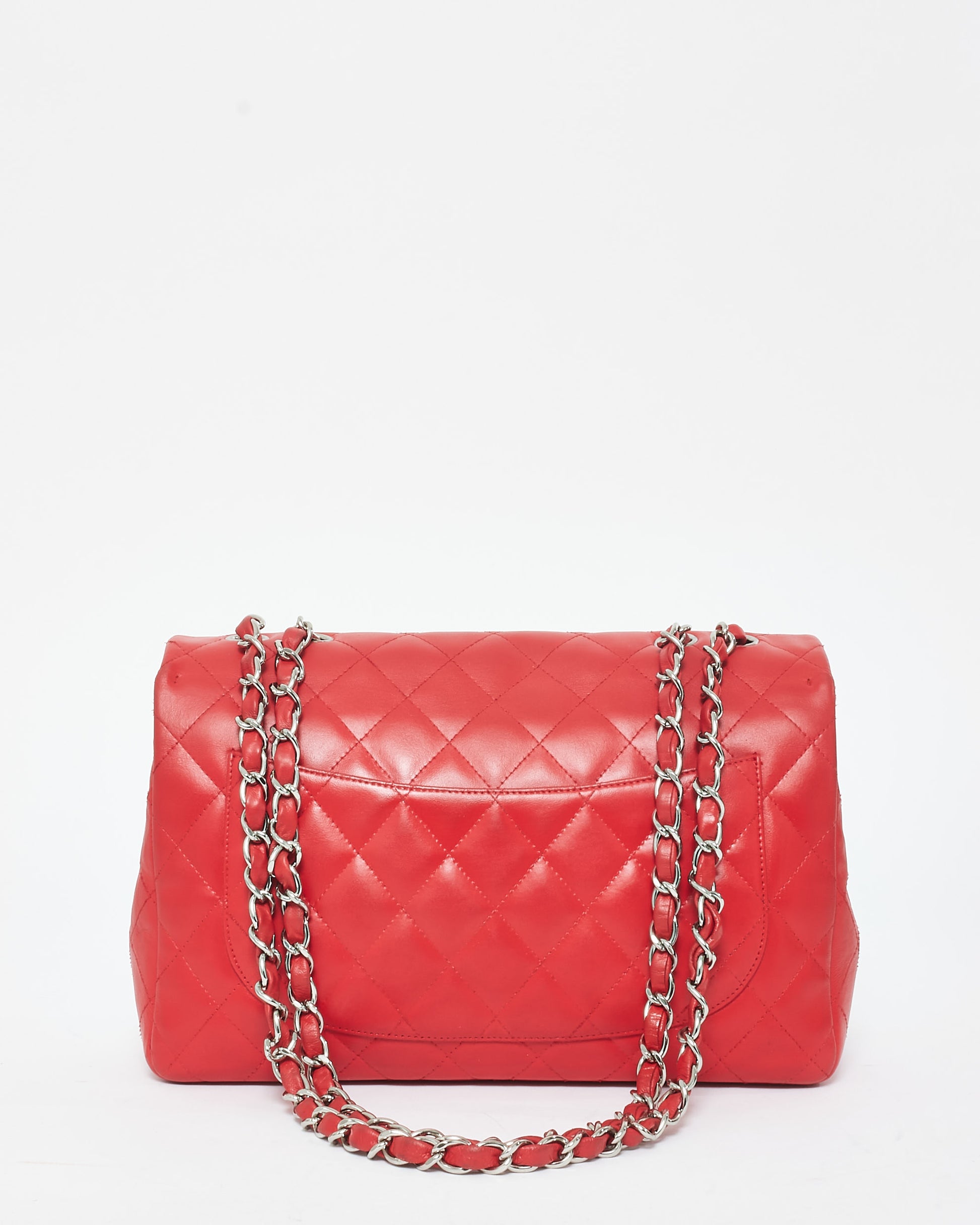 Red Lambskin Leather Jumbo Single Classic Flap Bag SHW