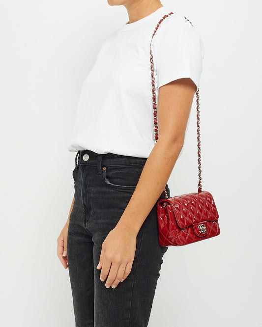 Red Patent Quilted Leather Square Mini Flap Bag