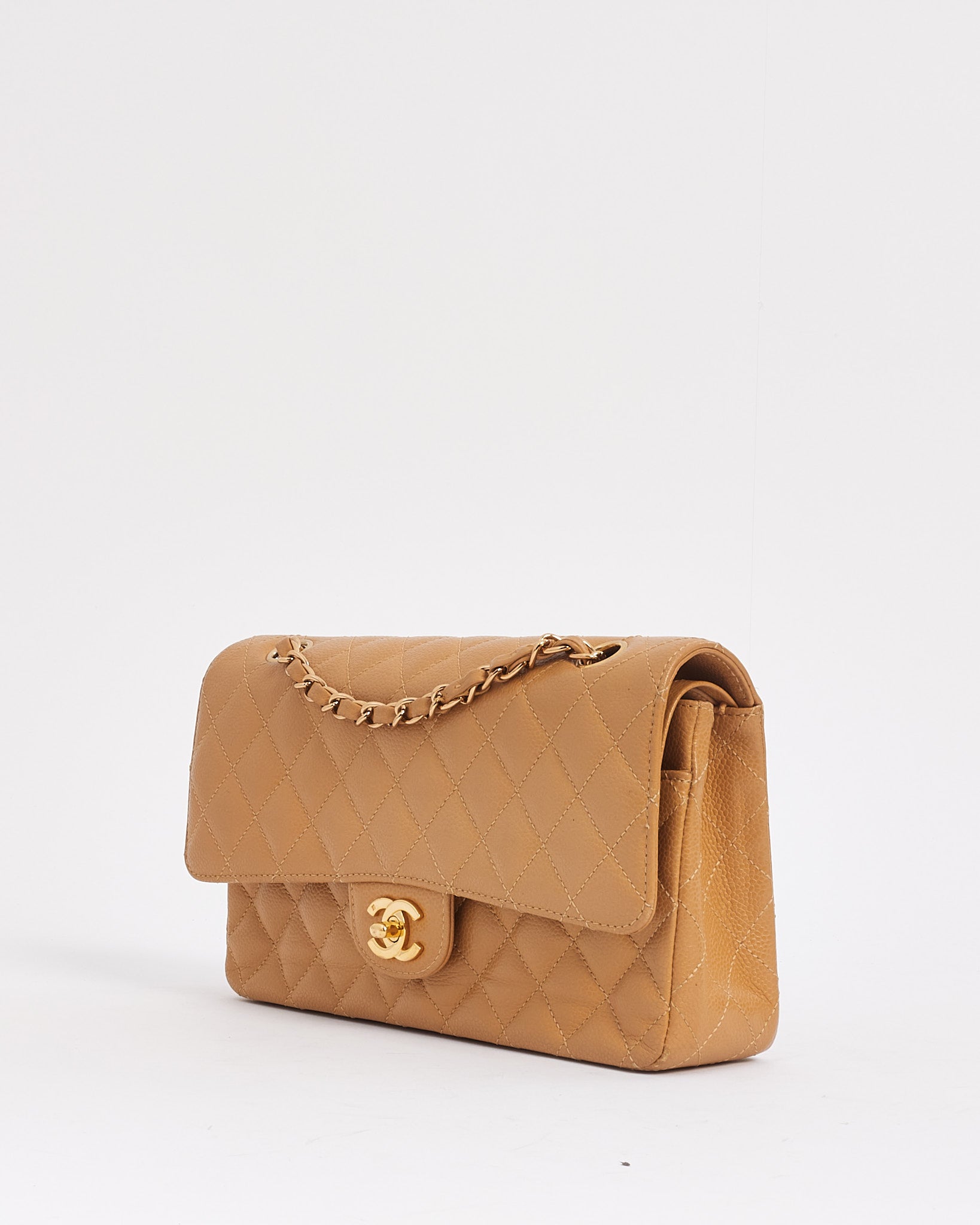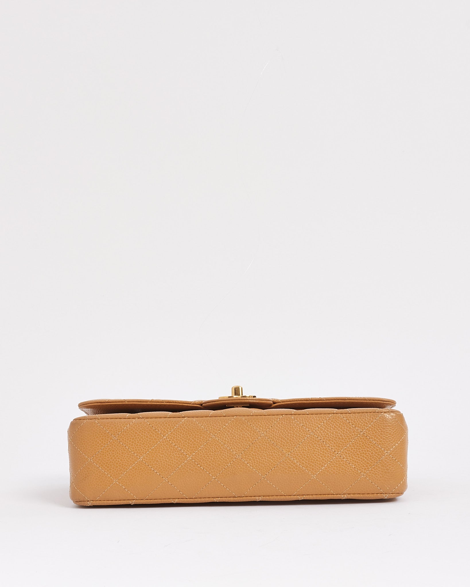 Vintage Beige Caviar Classic Double Flap Bag with Gold Hardware