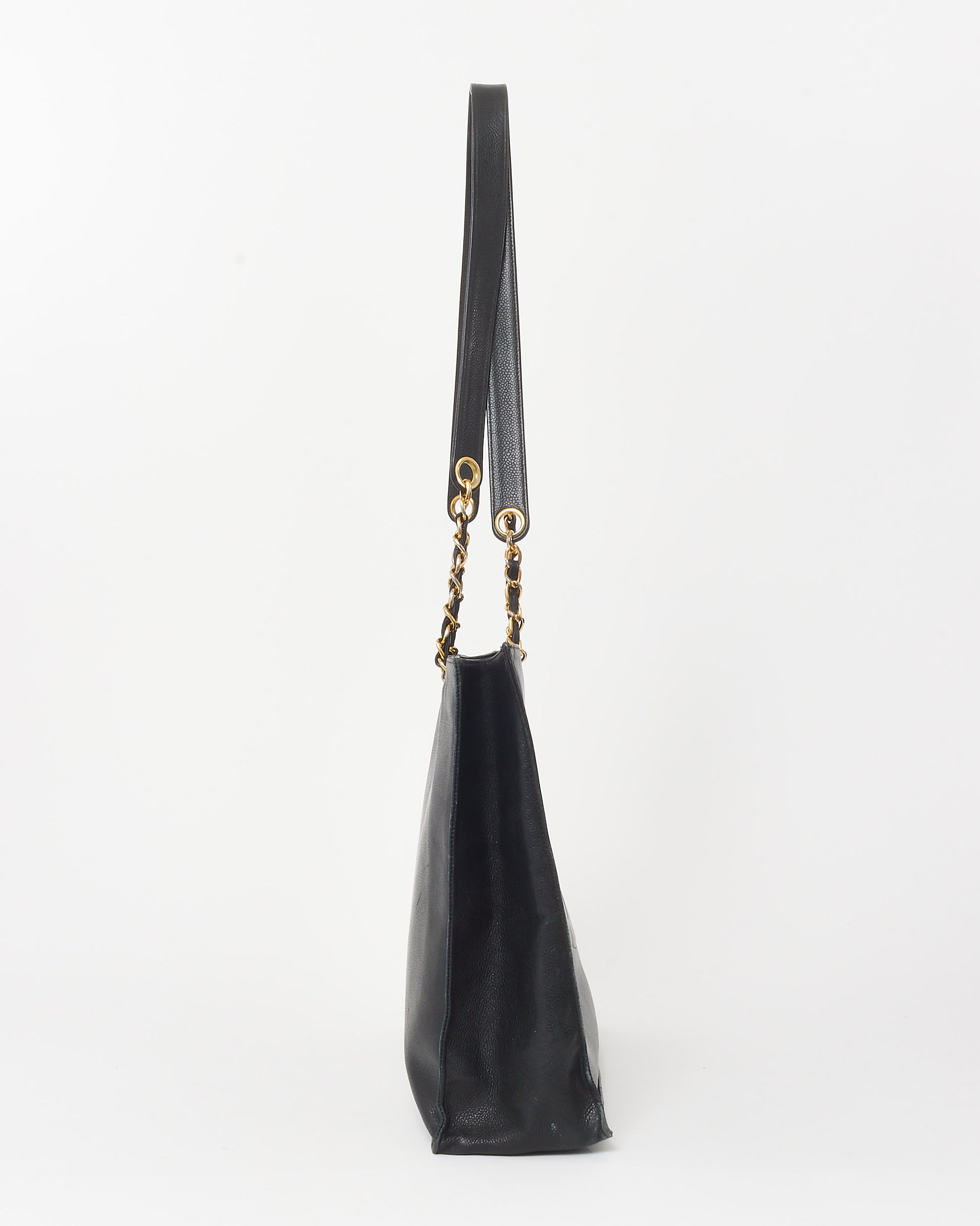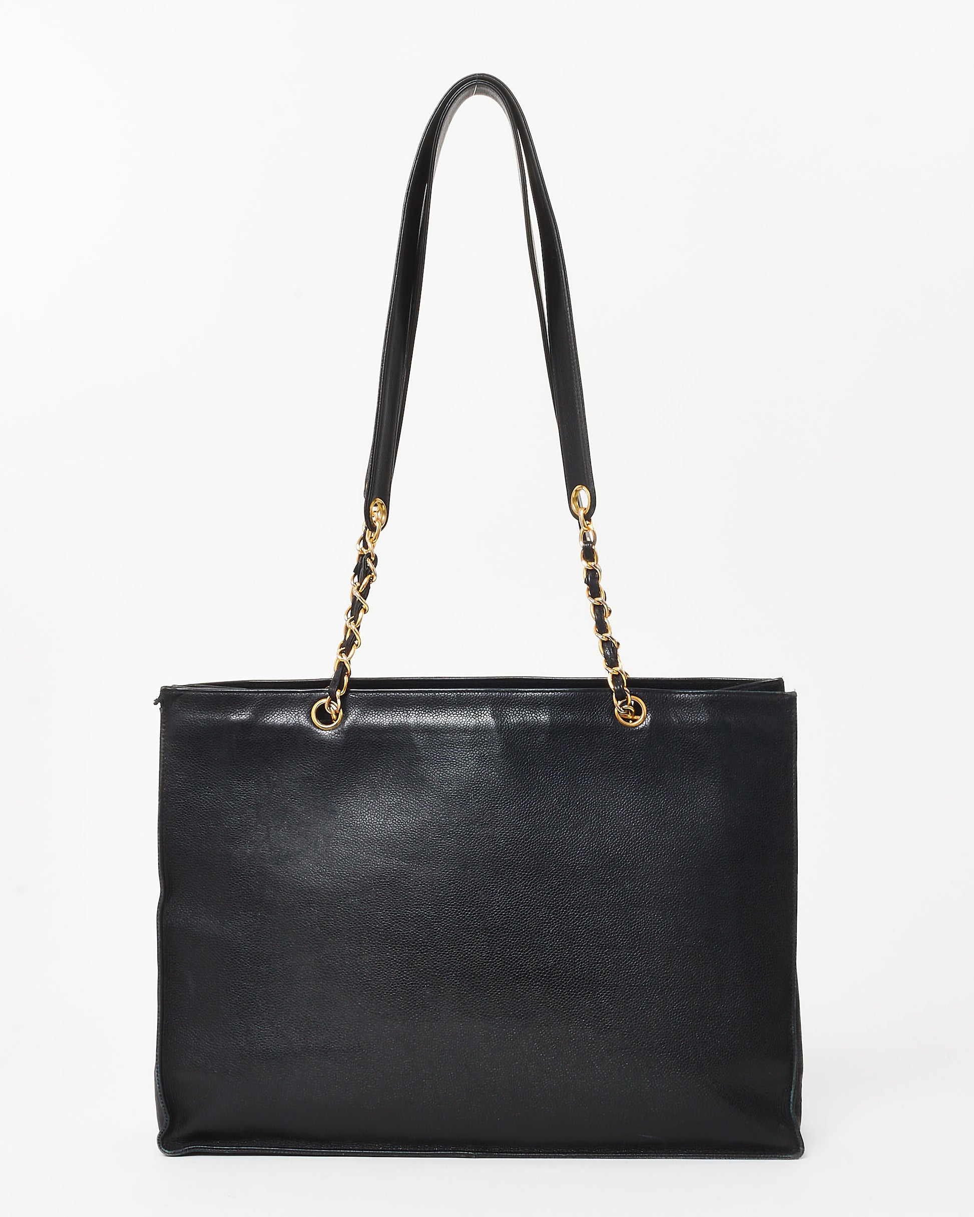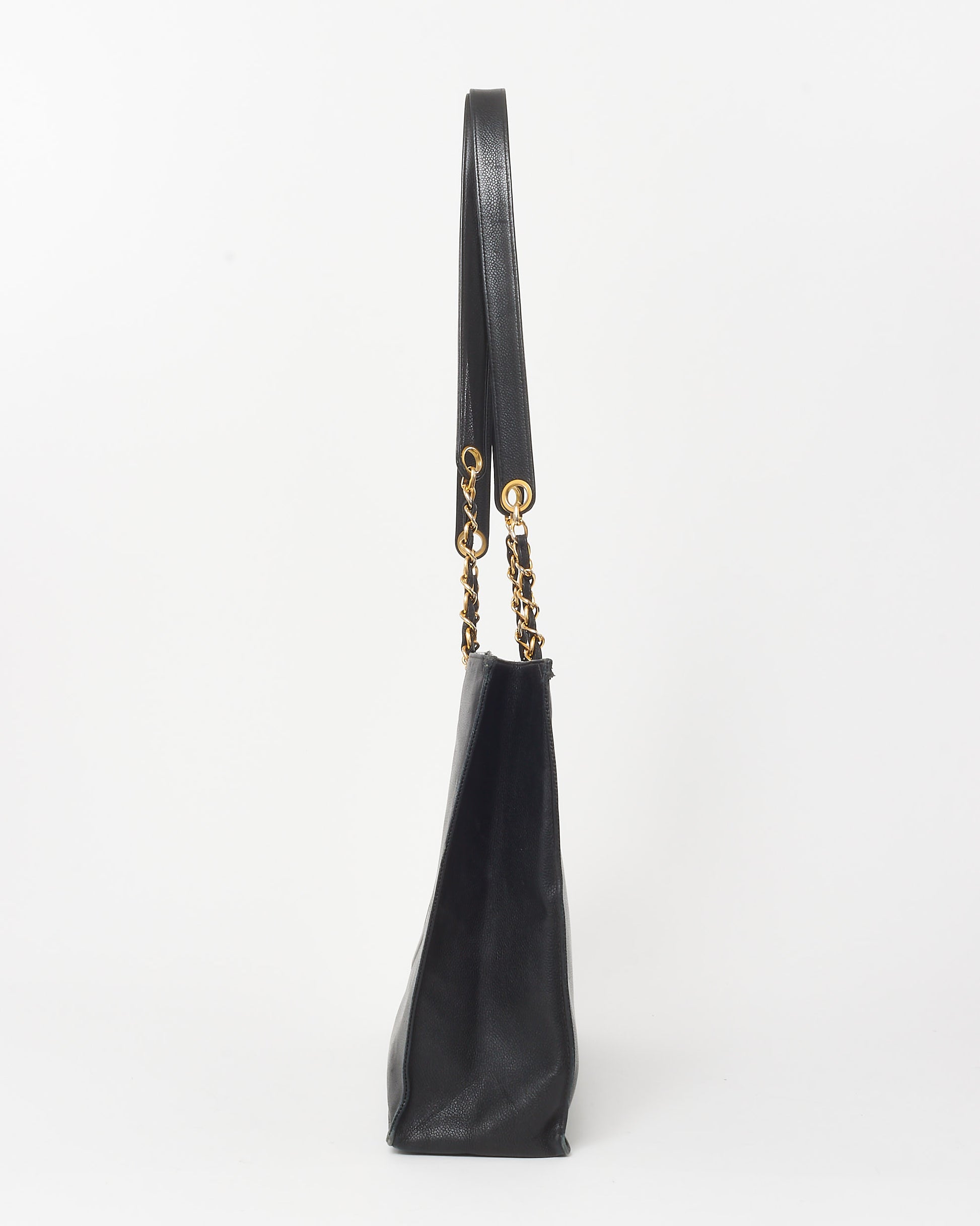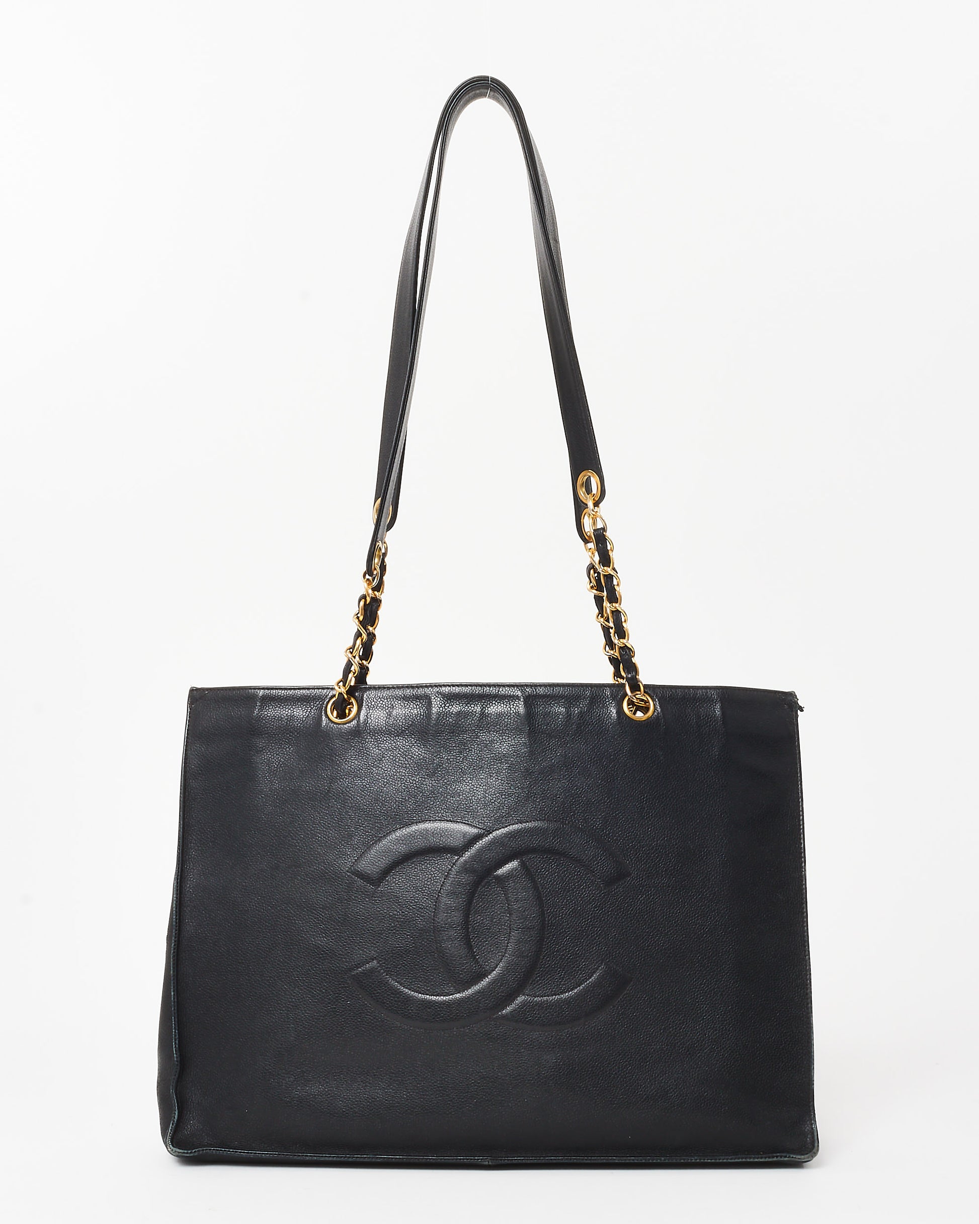 Vintage Black Calfskin CC Logo Large Chain Shopping Tote GHW