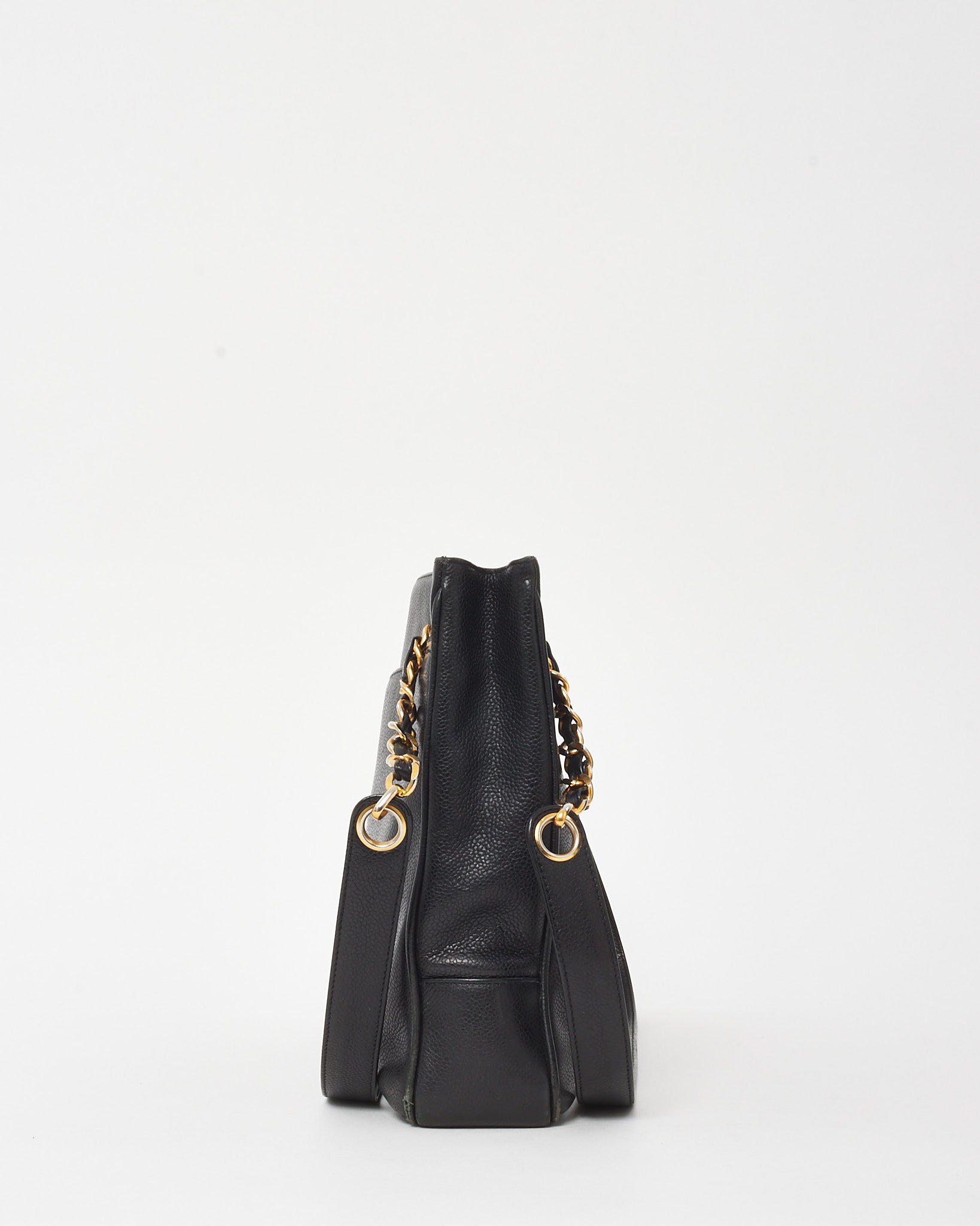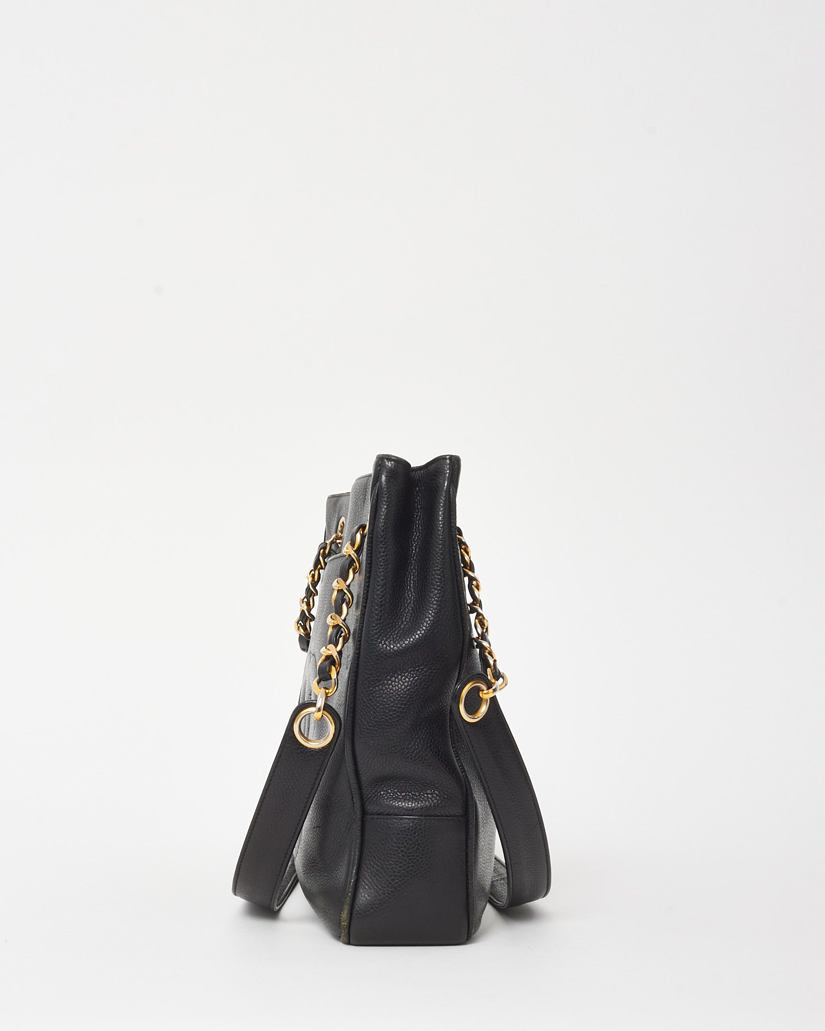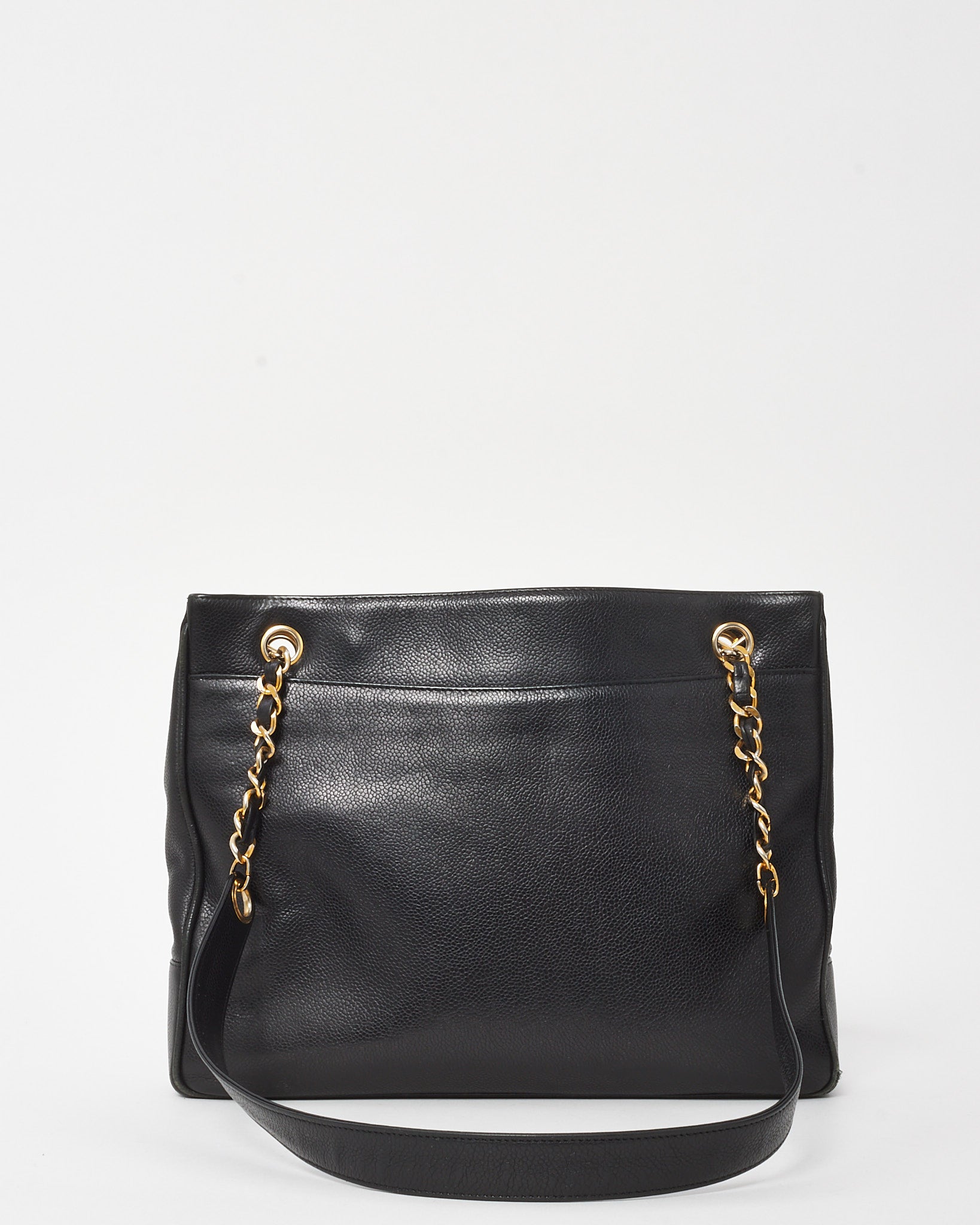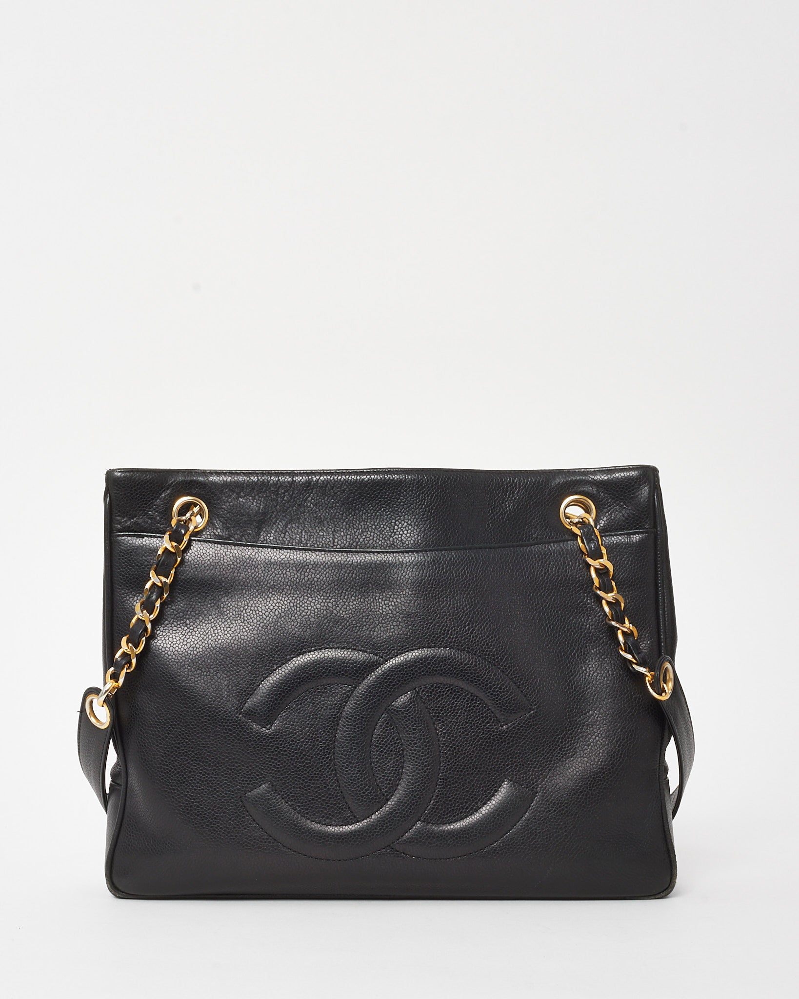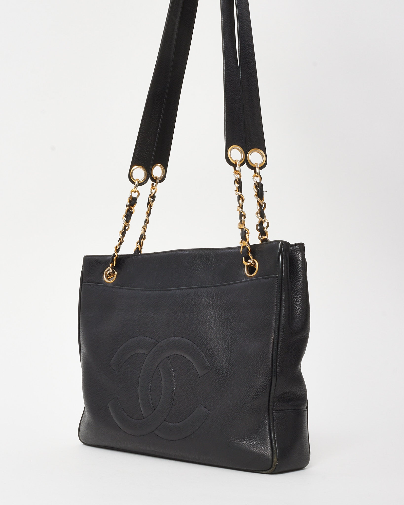 Vintage Black Caviar Leather CC Logo Shopper Tote Bag GHW