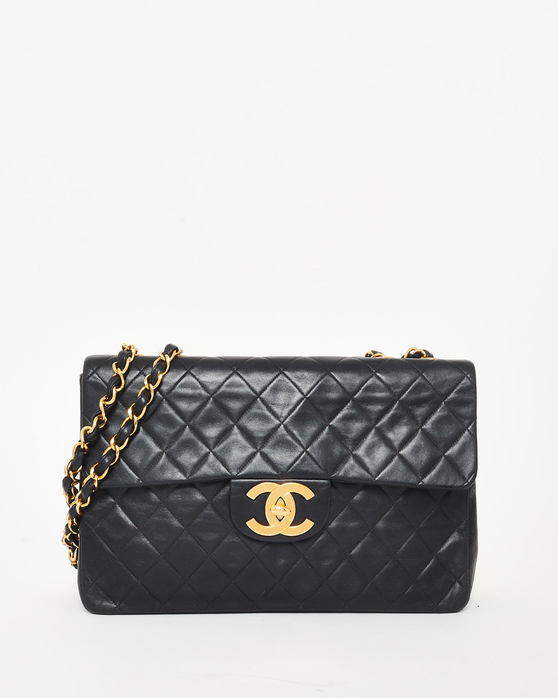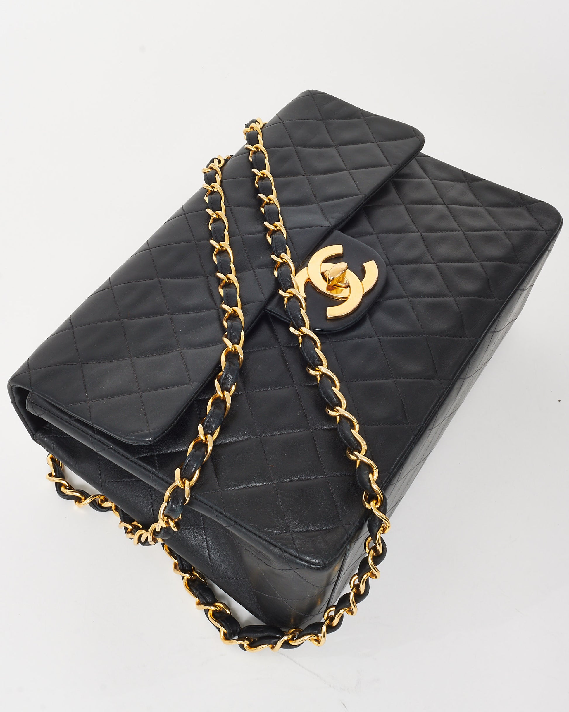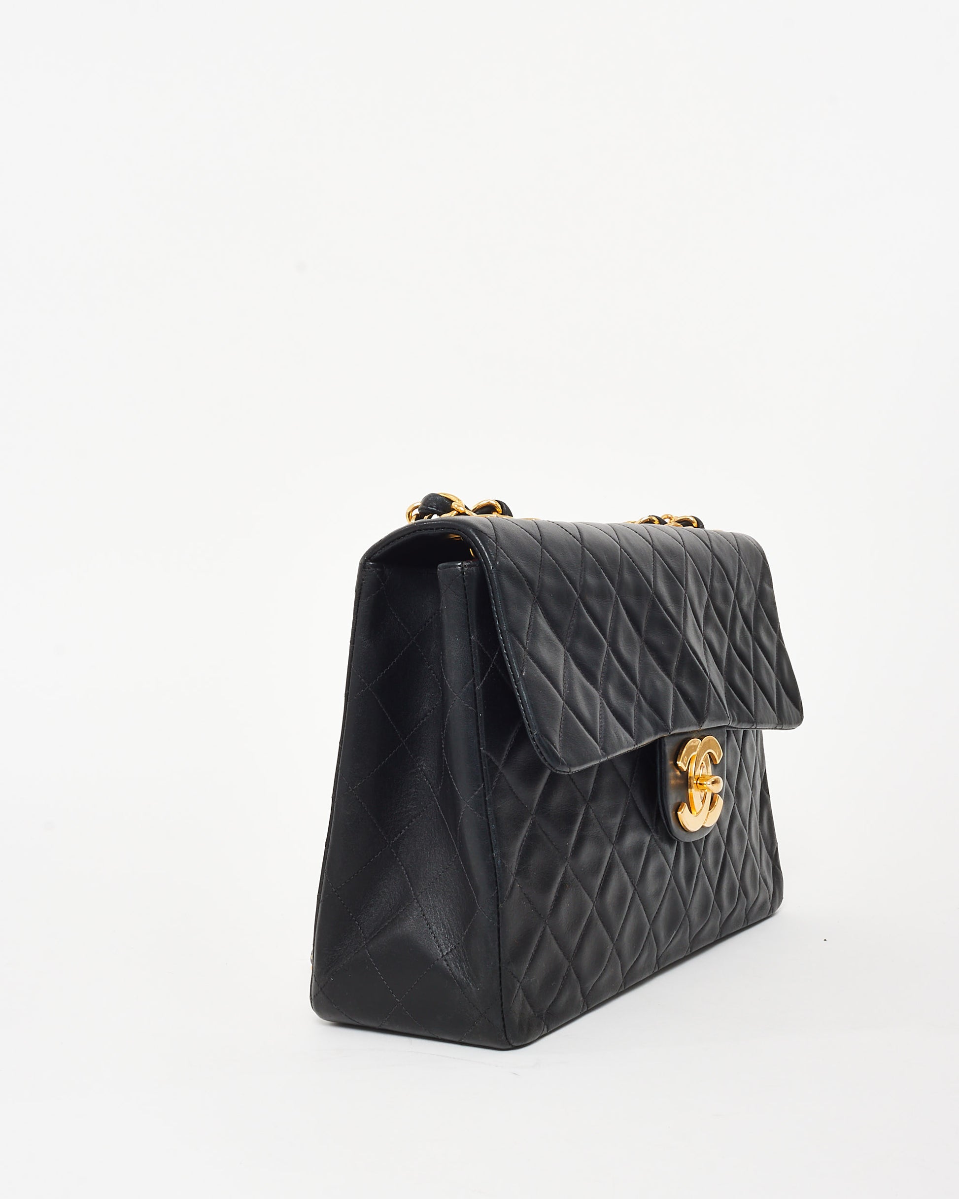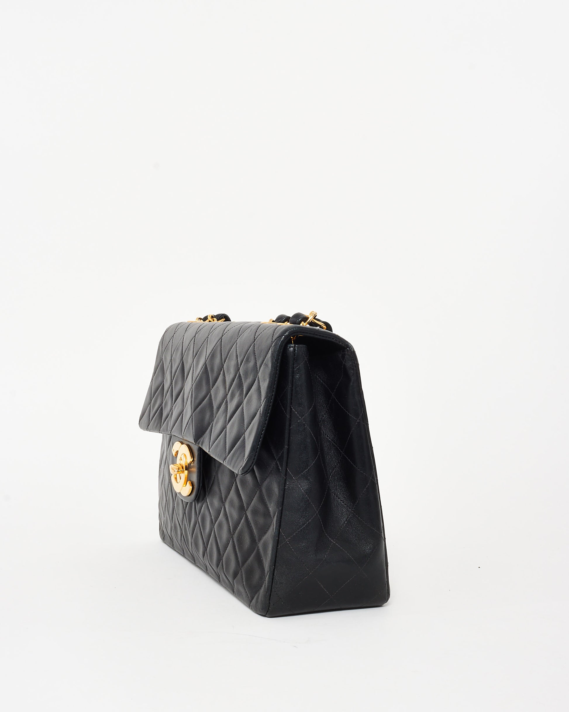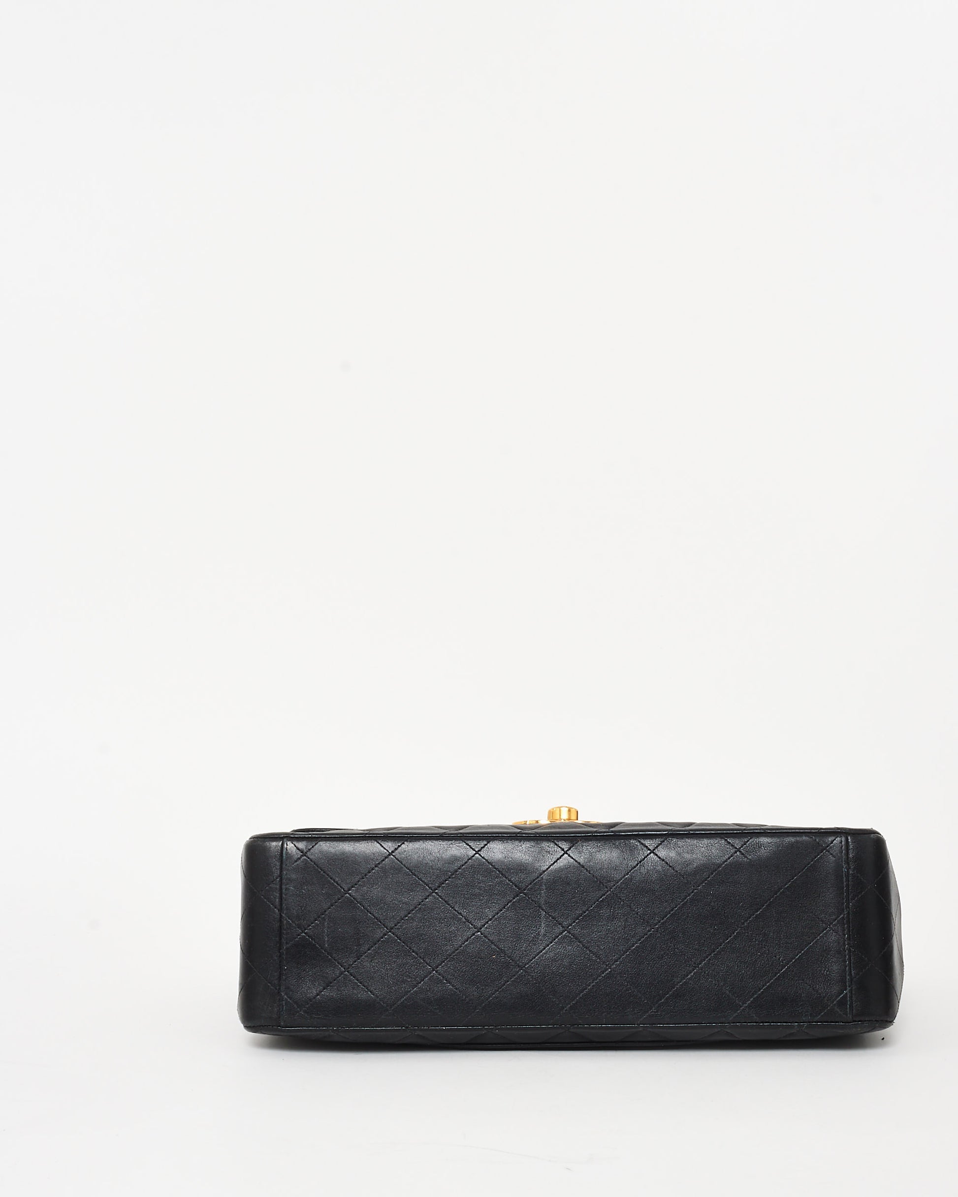 Vintage Black Lambskin 24K Gold Plated Hardware Maxi Single Flap Bag