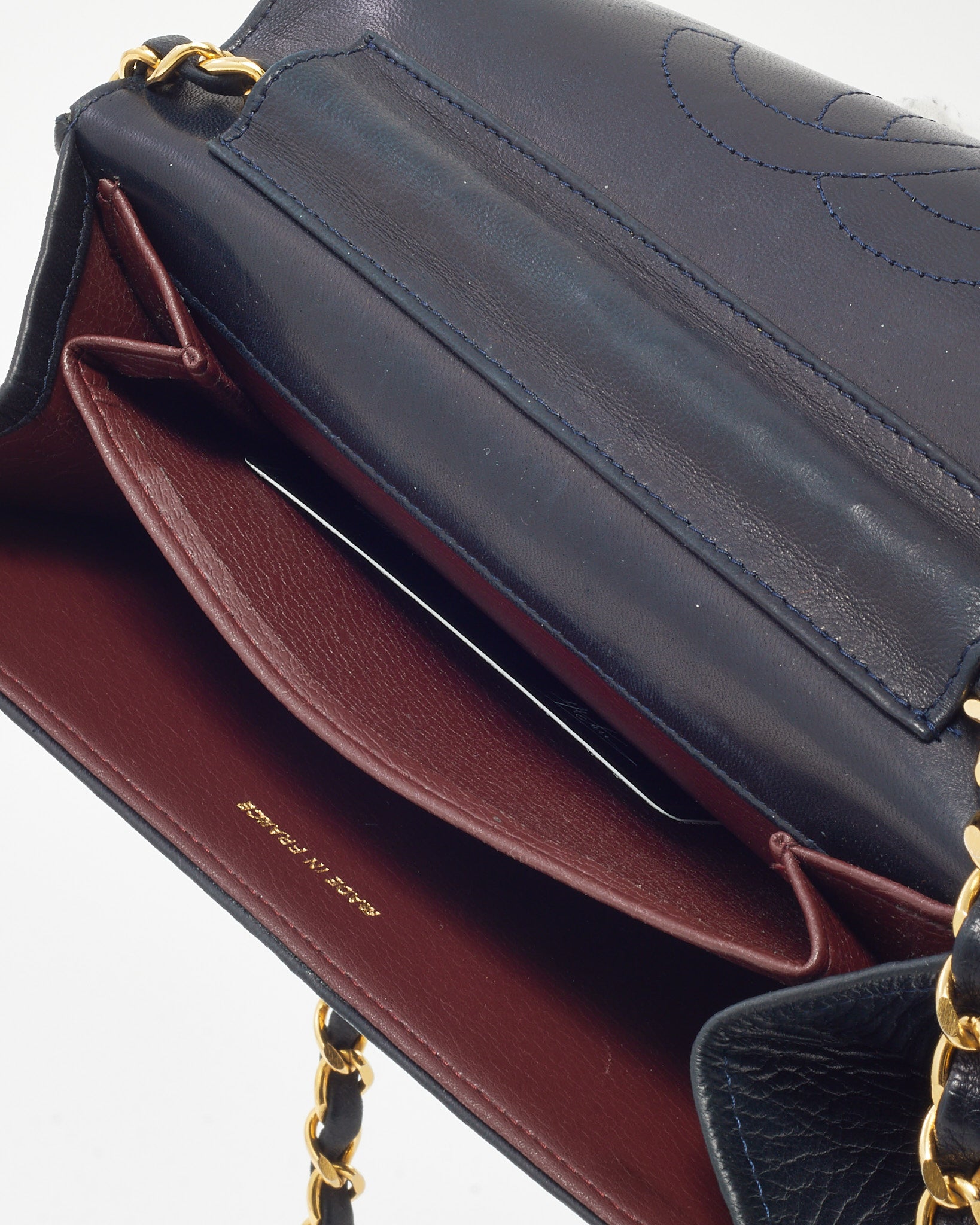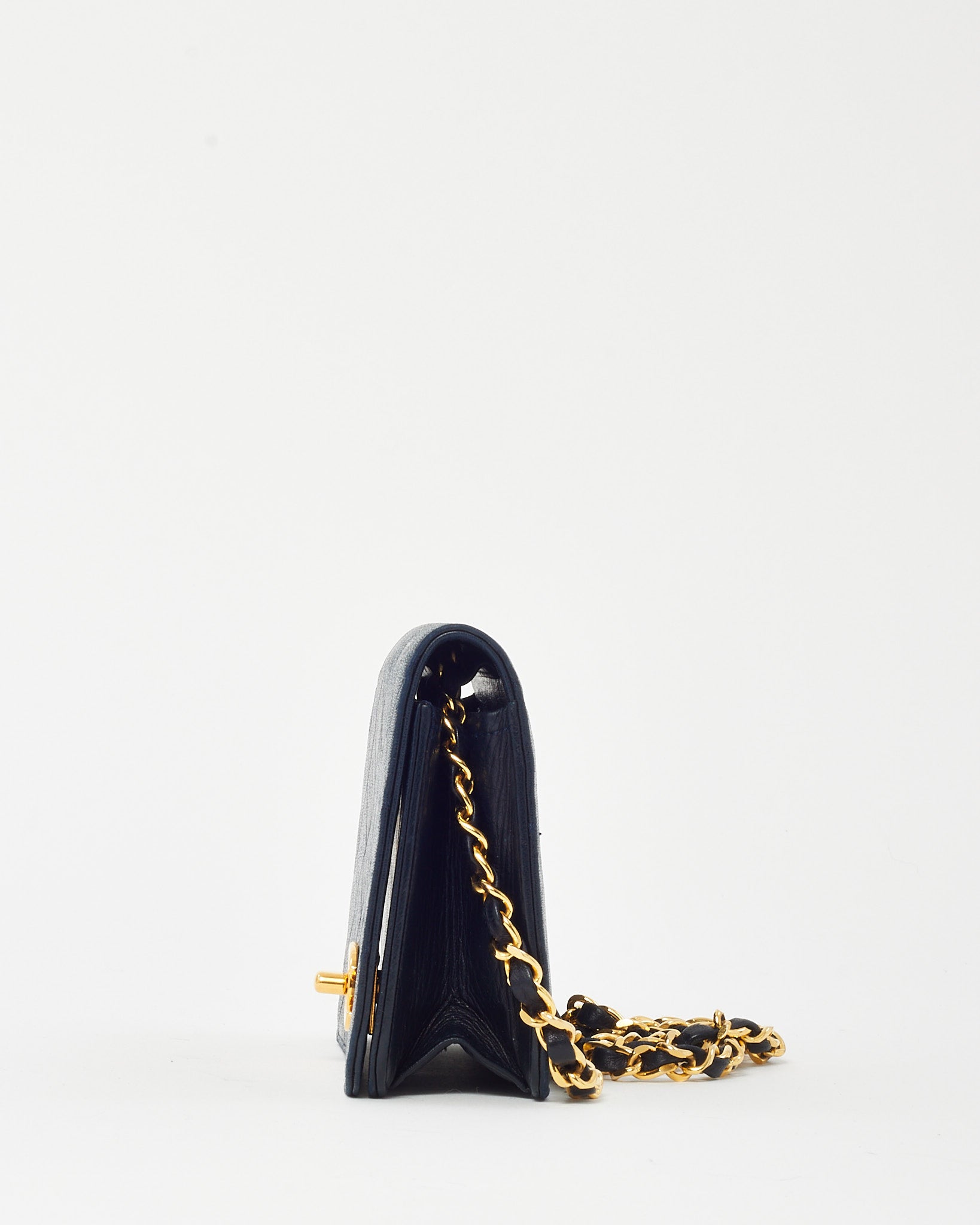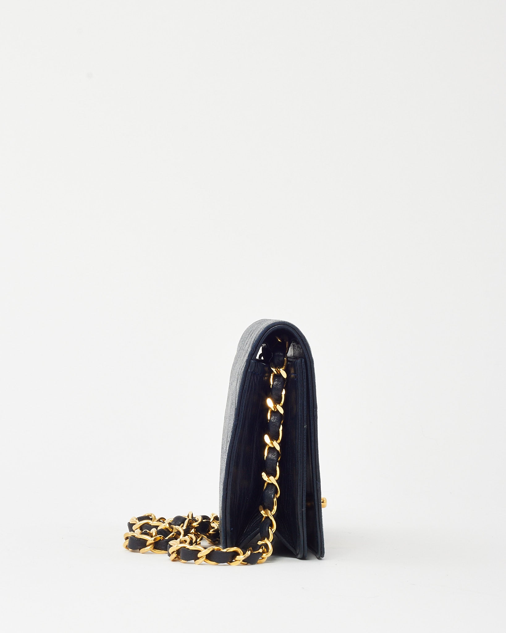 Vintage Navy Lambskin Leather Full Flap WOC Wallet on Chain Crossbody GHW