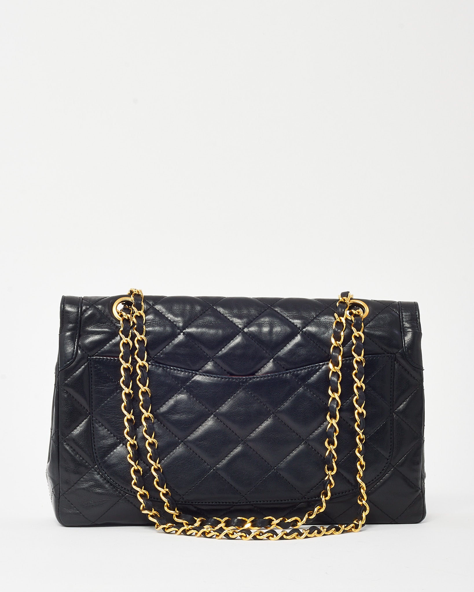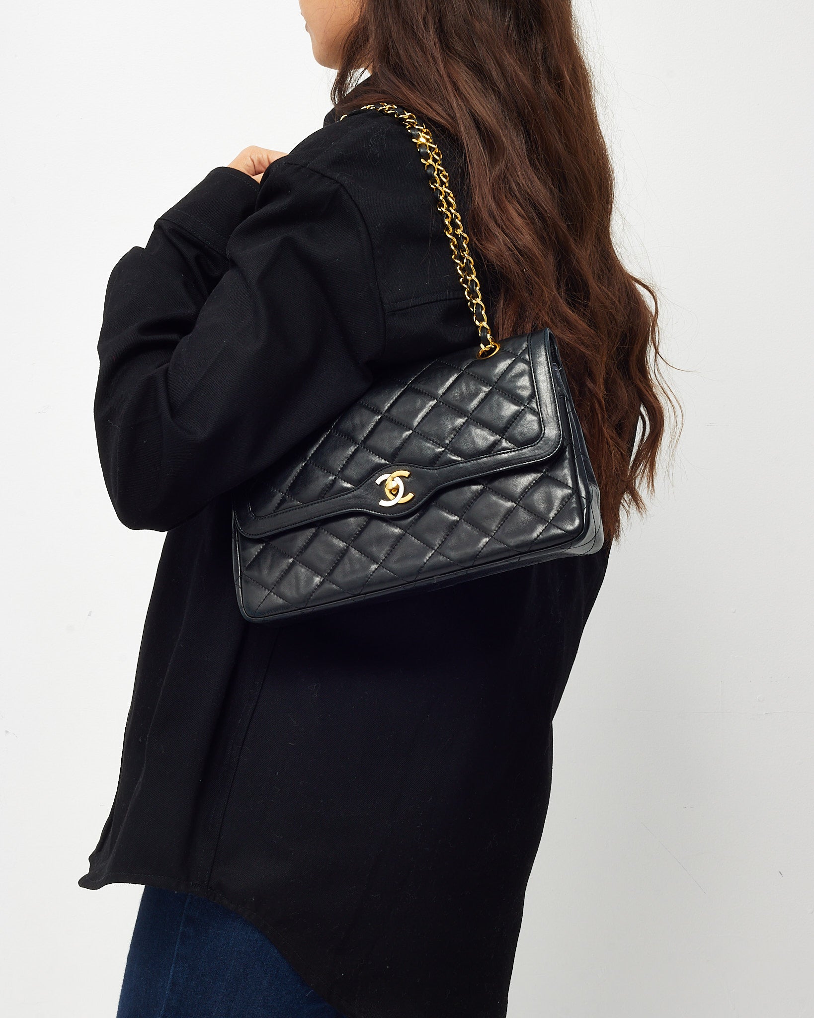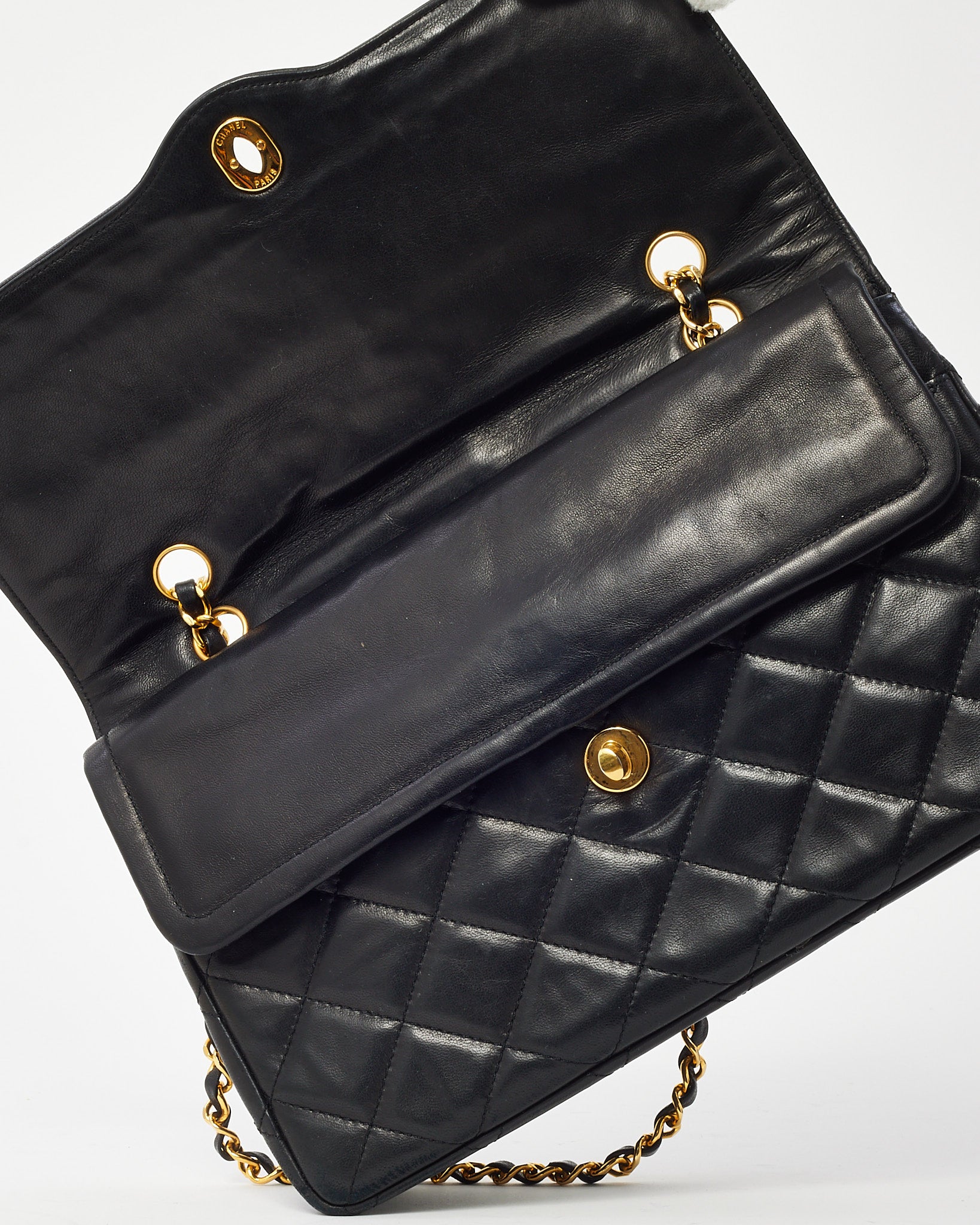 Vintage Black Lambskin Leather Medium Paris Double Flap Bag 2-Tone GHW