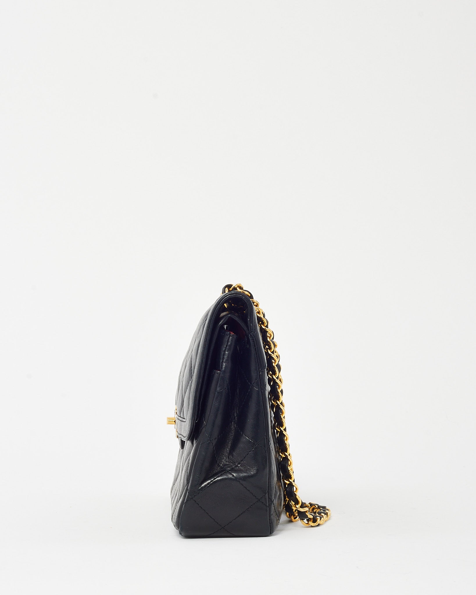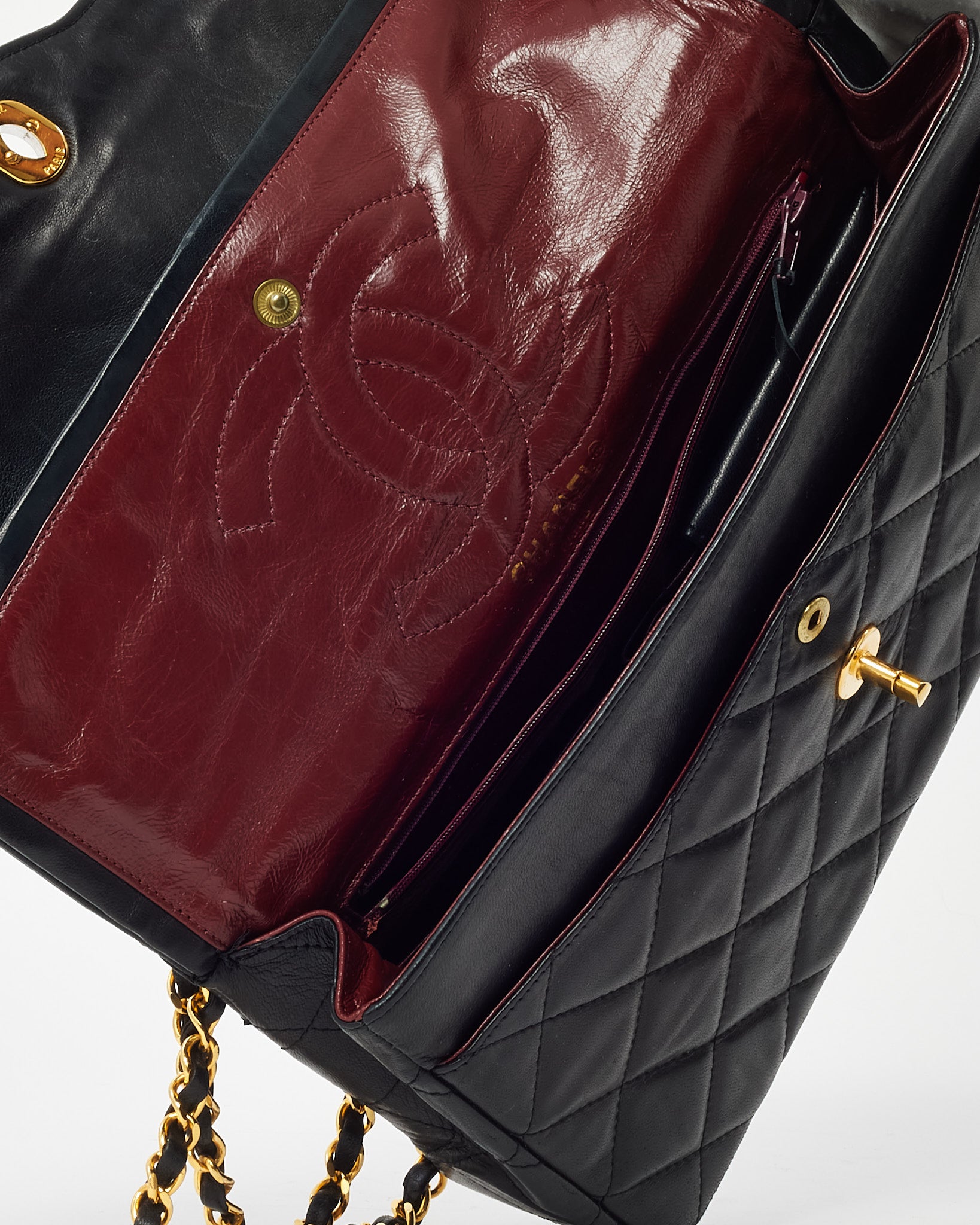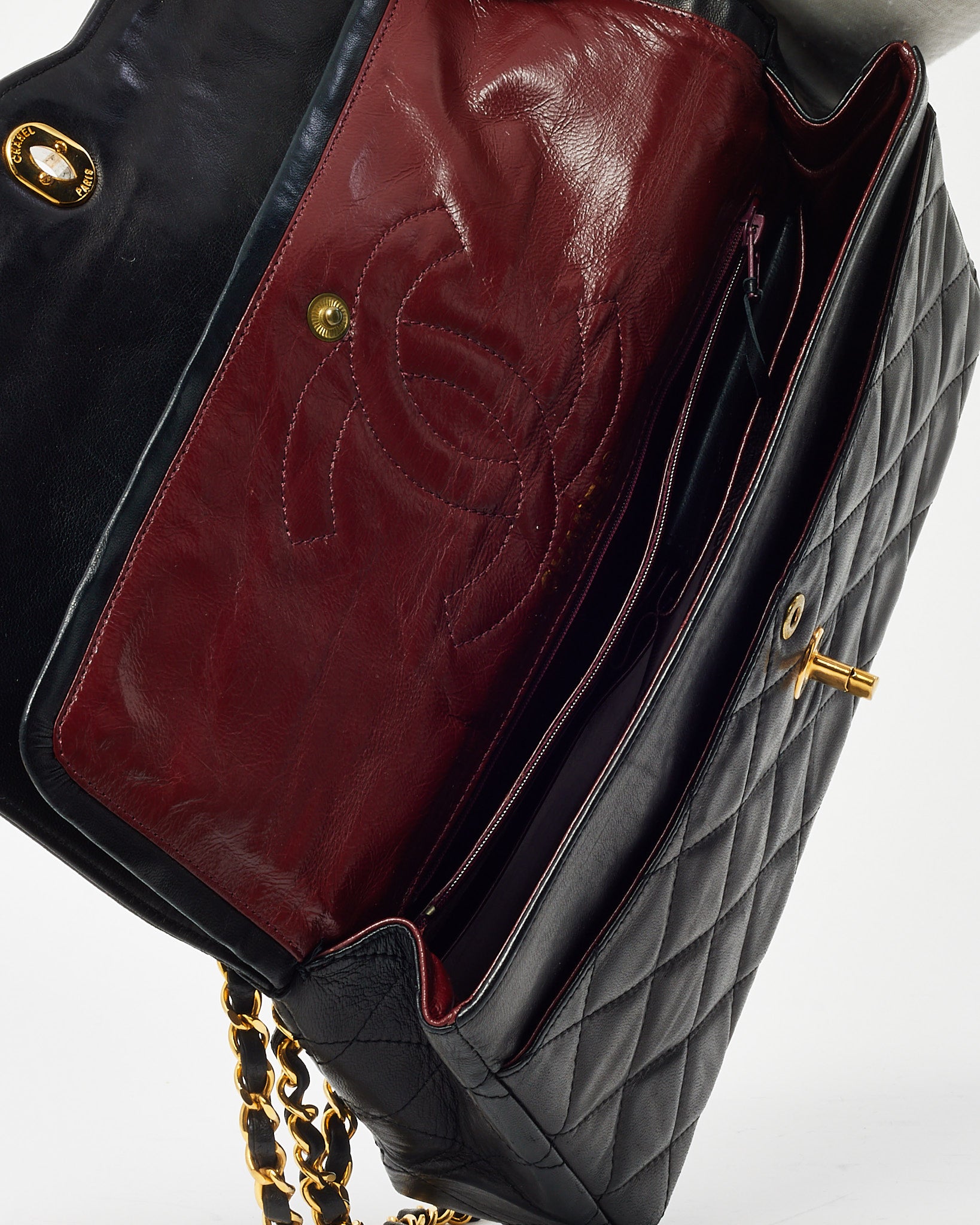 Vintage Black Lambskin Leather Medium Paris Double Flap Bag 2-Tone GHW