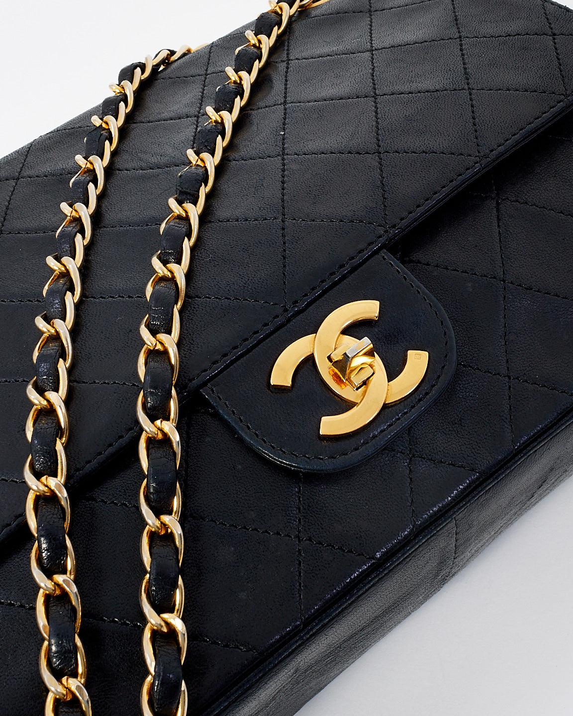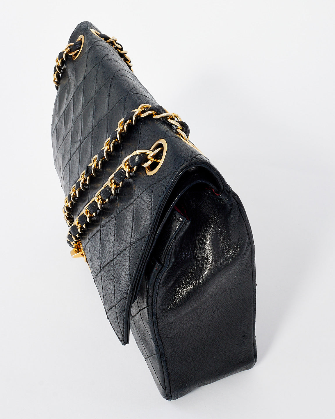 Vintage Black Lambskin Medium Double Flap Bag GHW