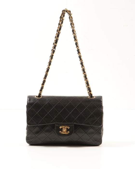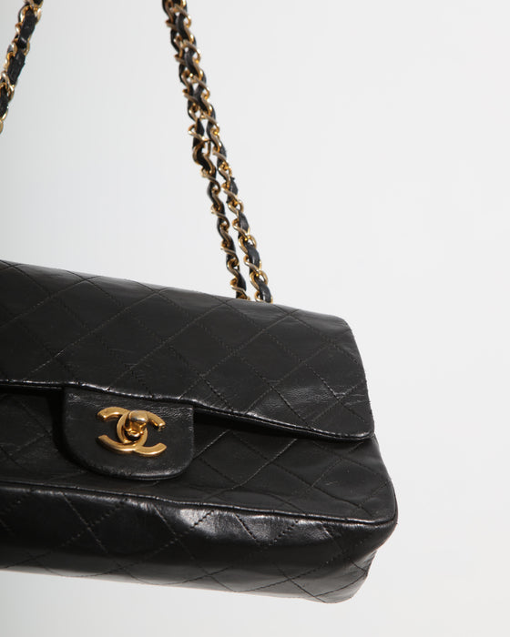 Vintage Black Lambskin Small Classic Double Flap Bag GHW