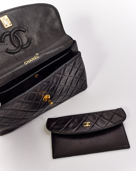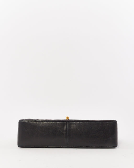 Vintage Black Lambskin Leather Single Flap Pocket Chain Shoulder Bag