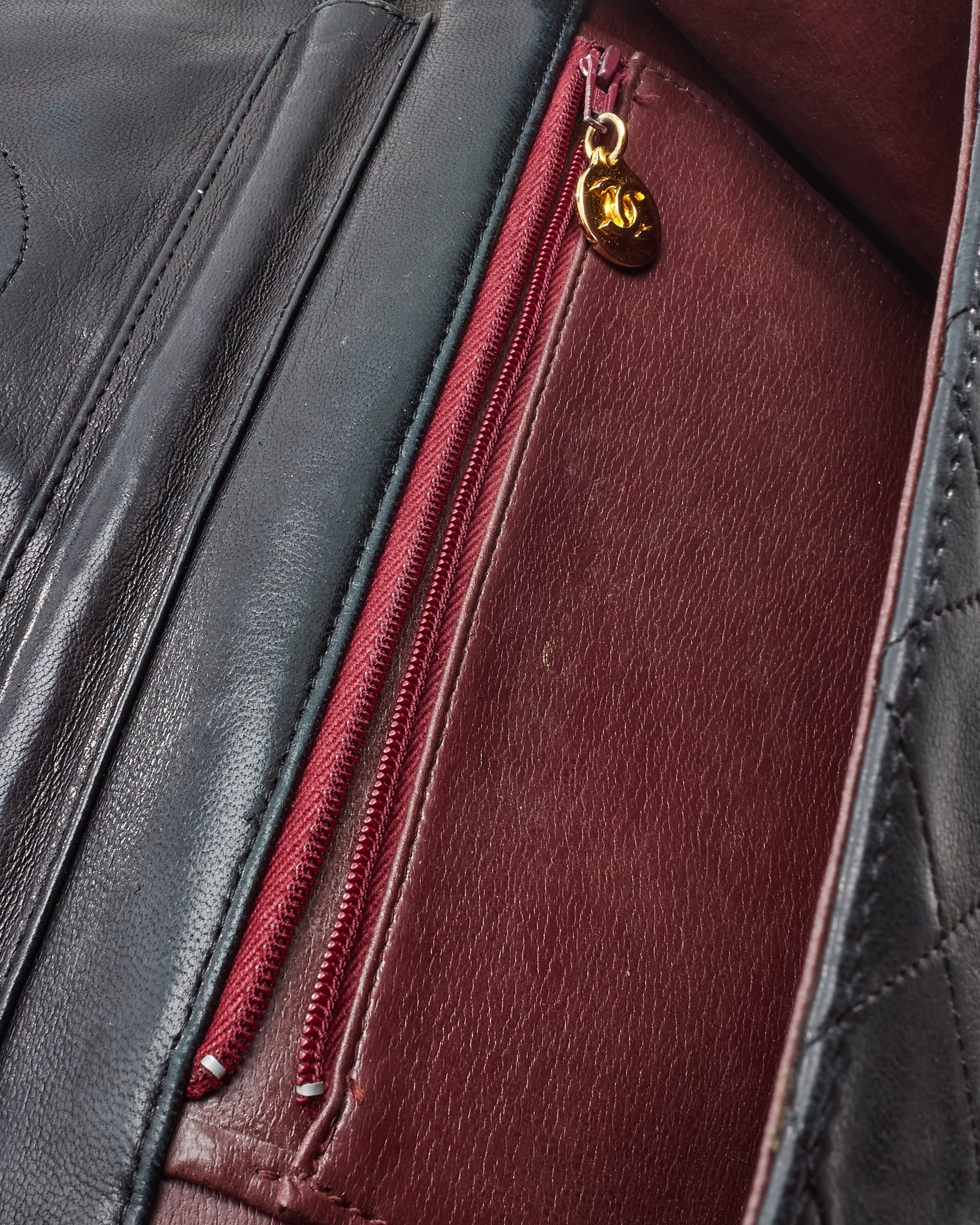 A timeless investment piece, the pre-owned authentic Chanel Vintage Black Quilted Lambskin Leather Single Flap Bag is the epitome of classic luxury. Crafted from buttery-soft black quilted lambskin leather, this bag features Chanel’s iconic diamond quilting, offering a refined and elegant silhouette.