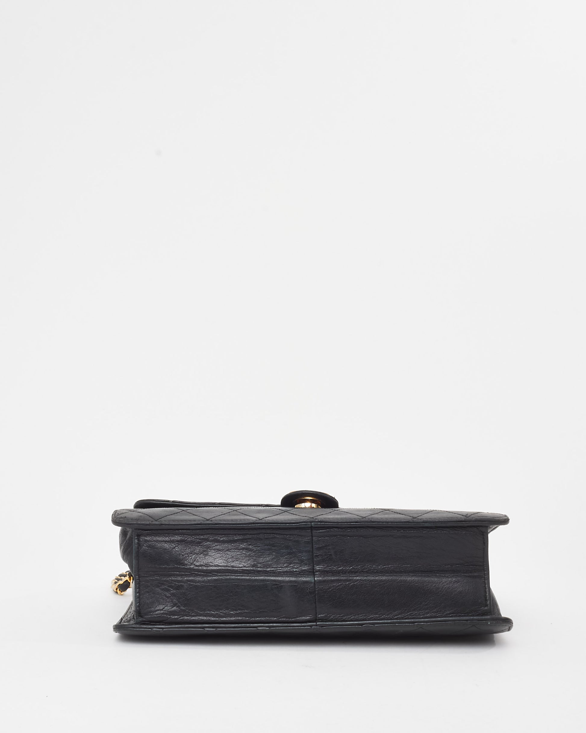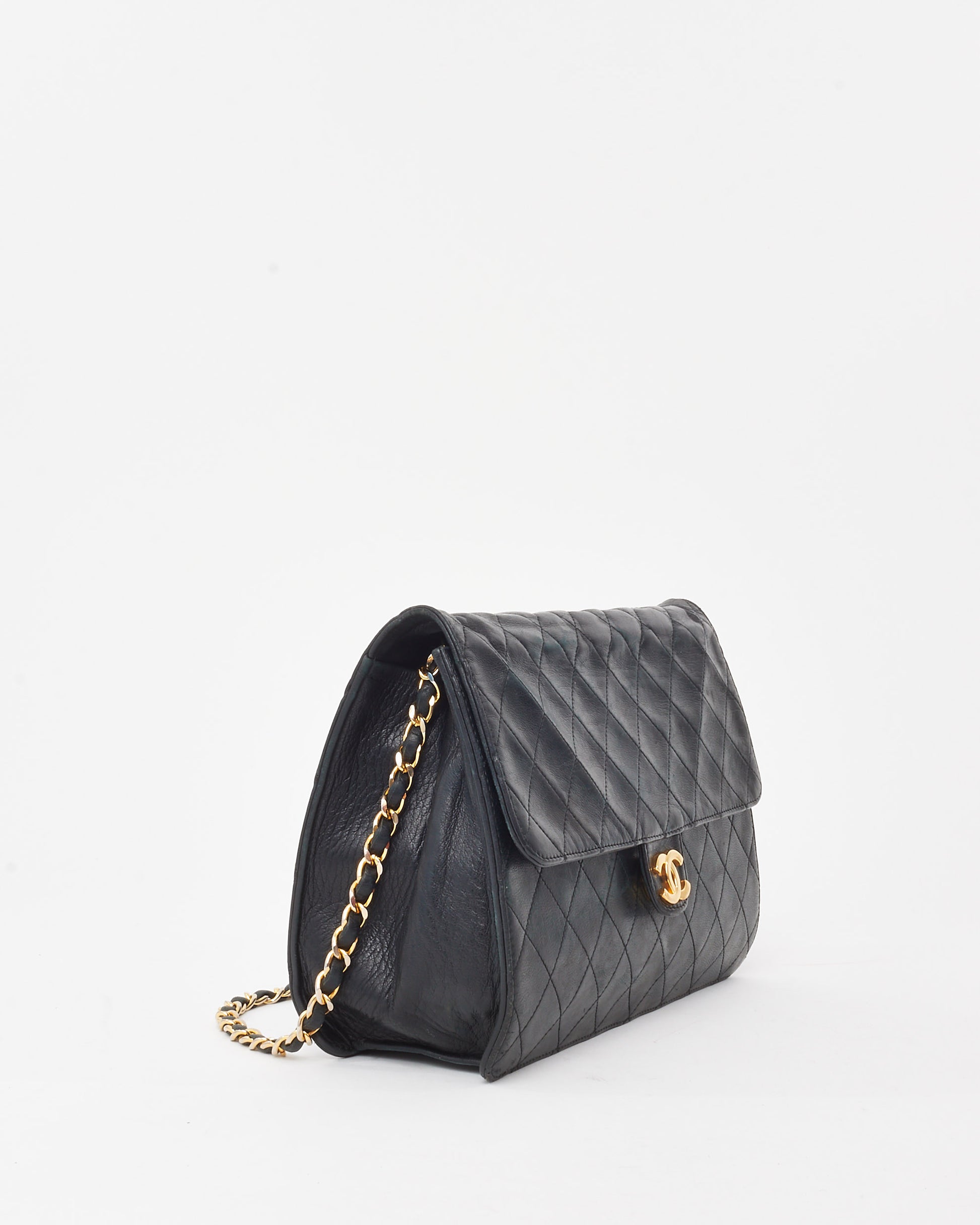 Vintage Black Quilted Lambskin Leather Single Flap Bag GHW
