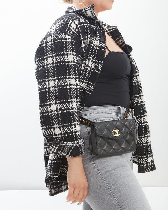 Vintage Black Quilted Lambskin Waist Belt Bag GHW
