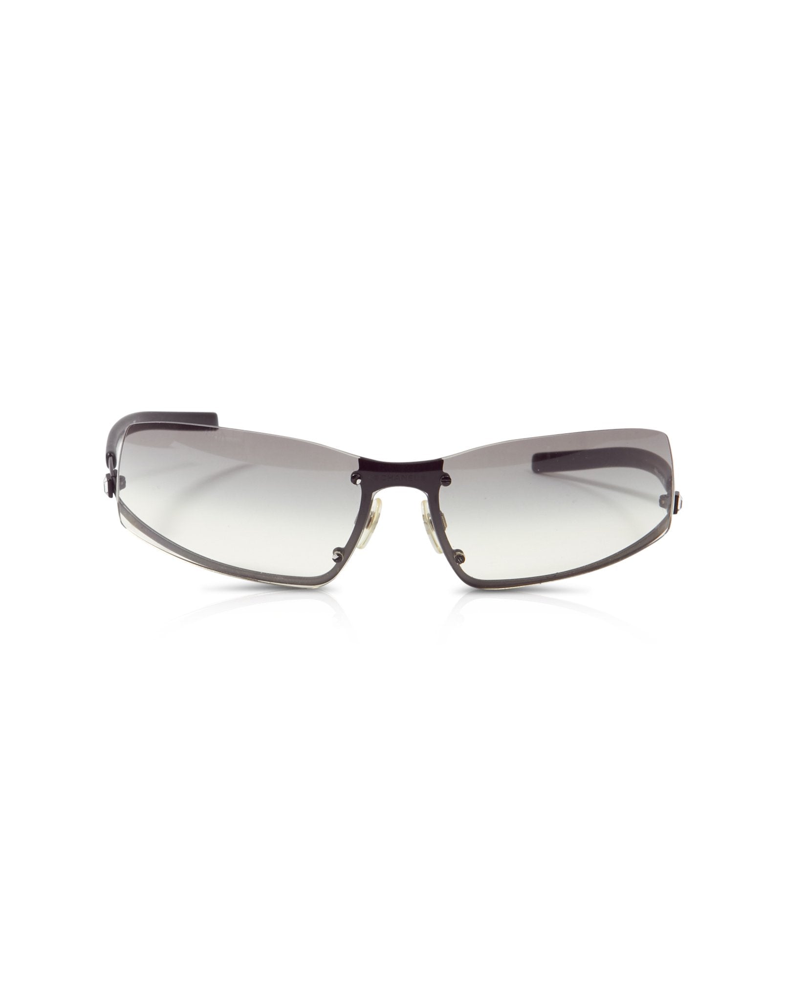 Vintage 4066-B Black Wrap Around Oval Crystal Stud Sunglasses