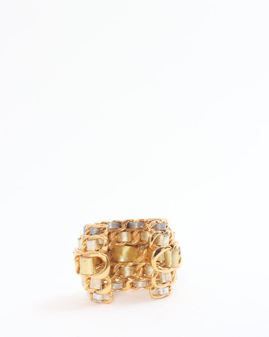 Vintage Gold/Silver Metallic Woven Leather Chain Cuff