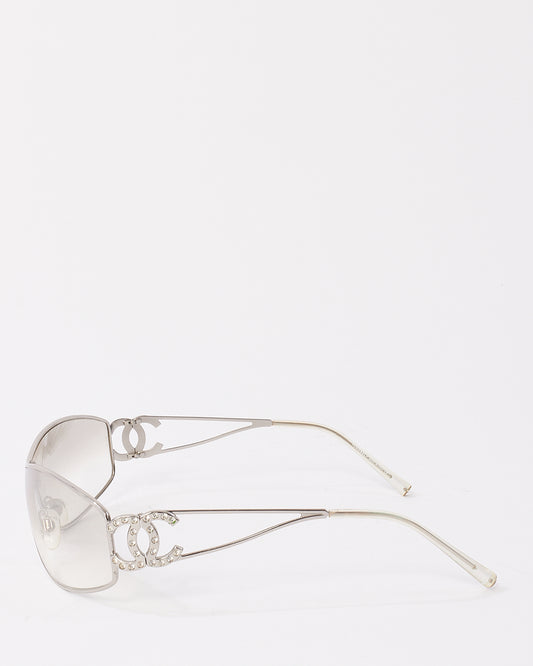 Vintage Silver Metal With CC Rhinestone Logo Clear Lense Sunglasses
