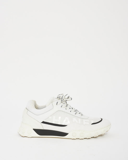 White/Black Fabric and Leather Low Top Sneakers - 39