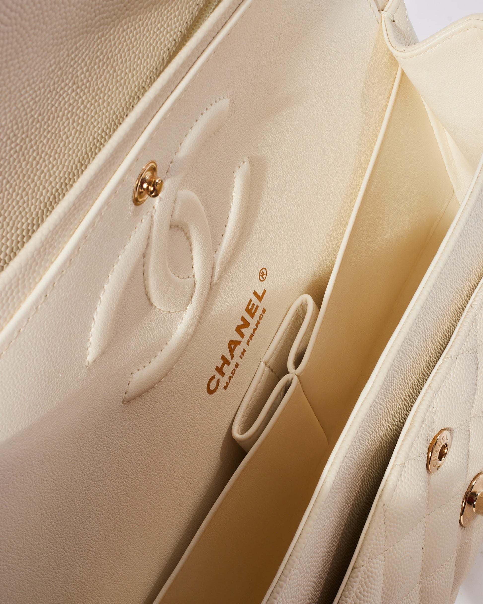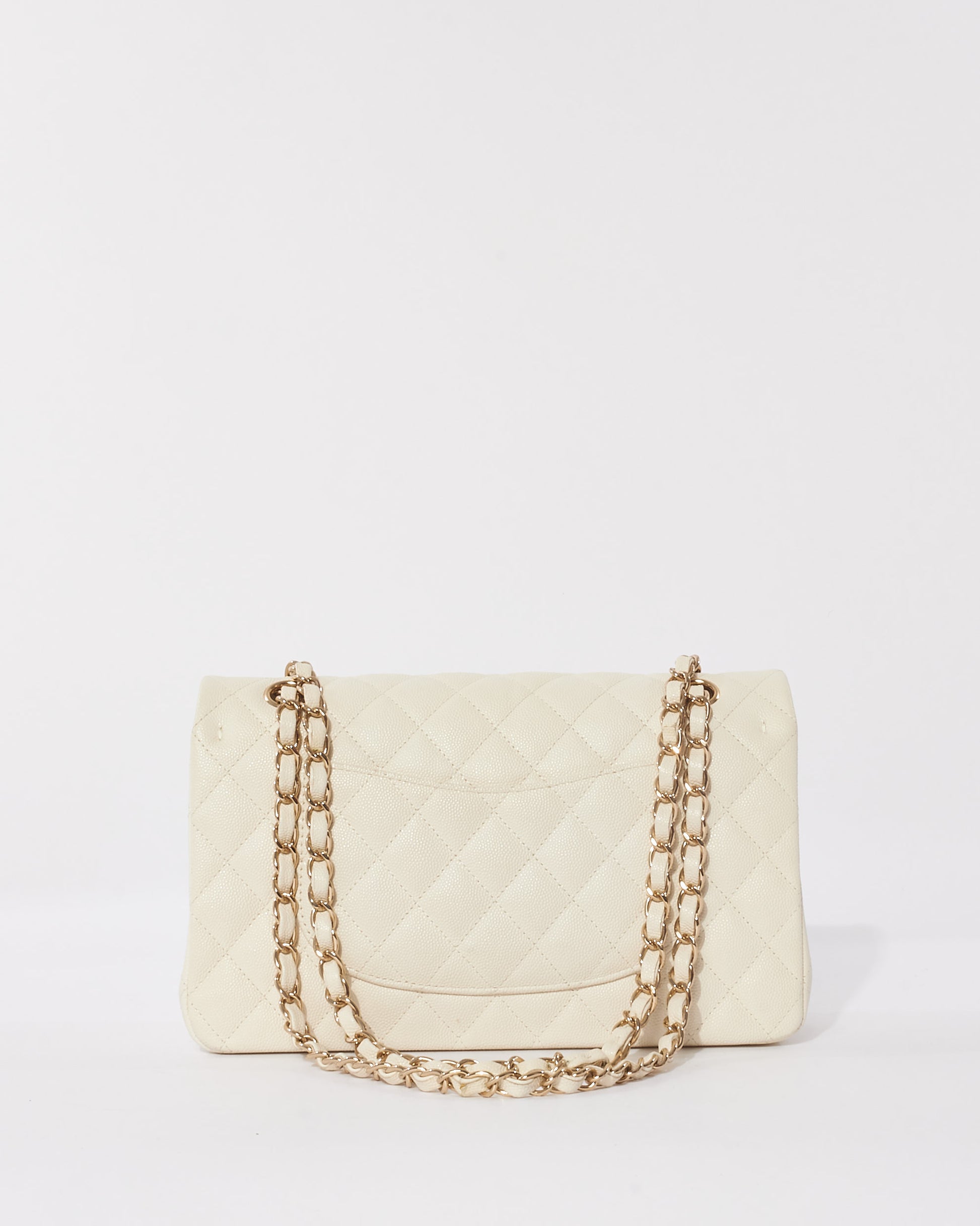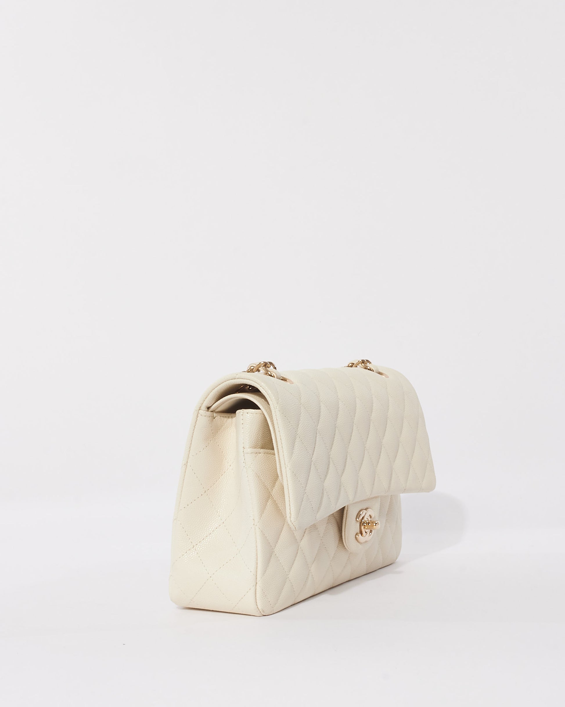 Explore Chanel's exquisite collection of handbags, featuring this certified pre-owned White Caviar Leather Medium CPHW 2021 Double Flap Bag. Embodying timeless elegance and modern sustainability, each piece, including favorites like this, is authenticated by Retyche. Discover sustainable luxury — shop our current treasures or find inspiration for your next coveted find.