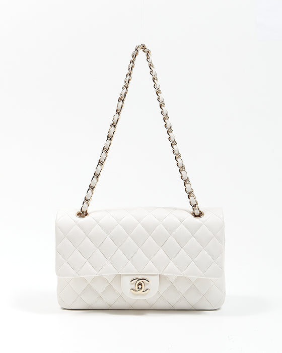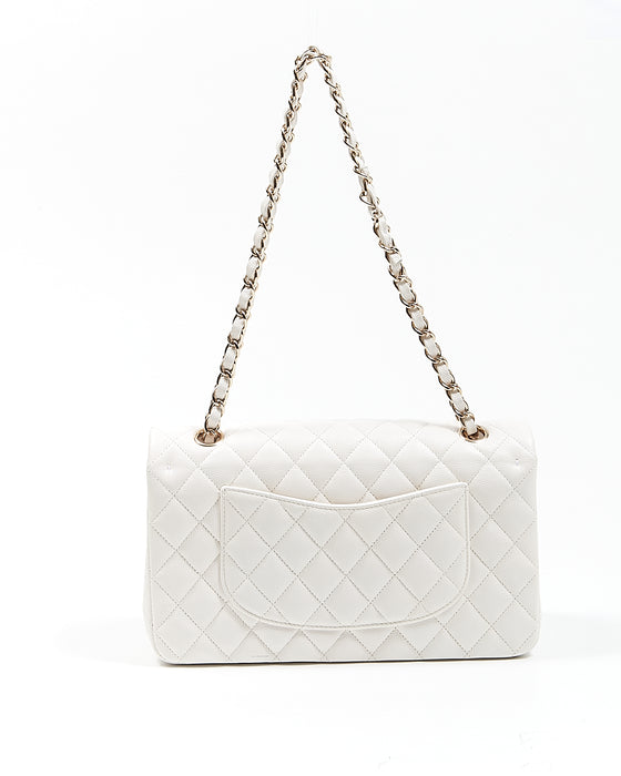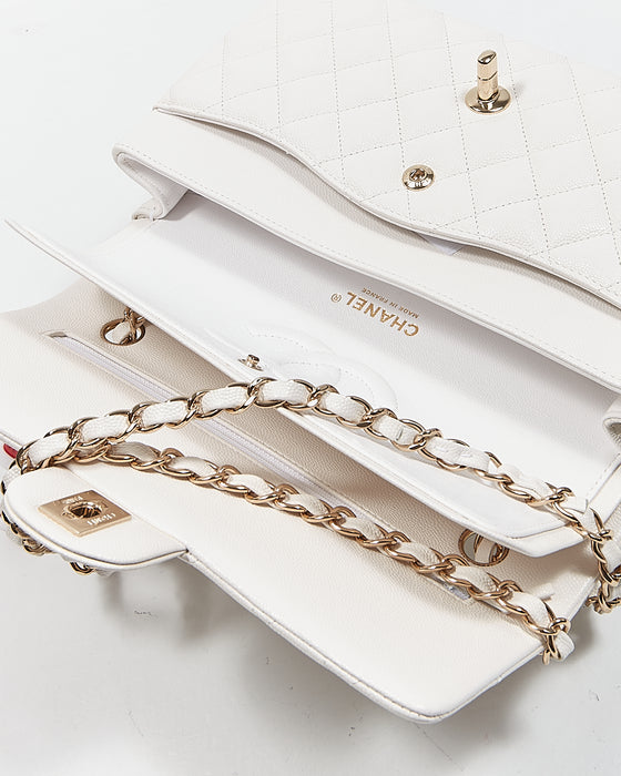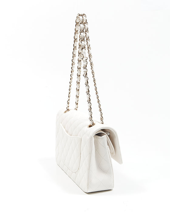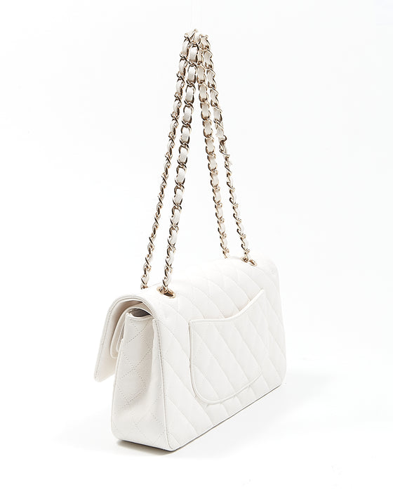 White Caviar Leather Quilted Medium Double Classic Flap Bag