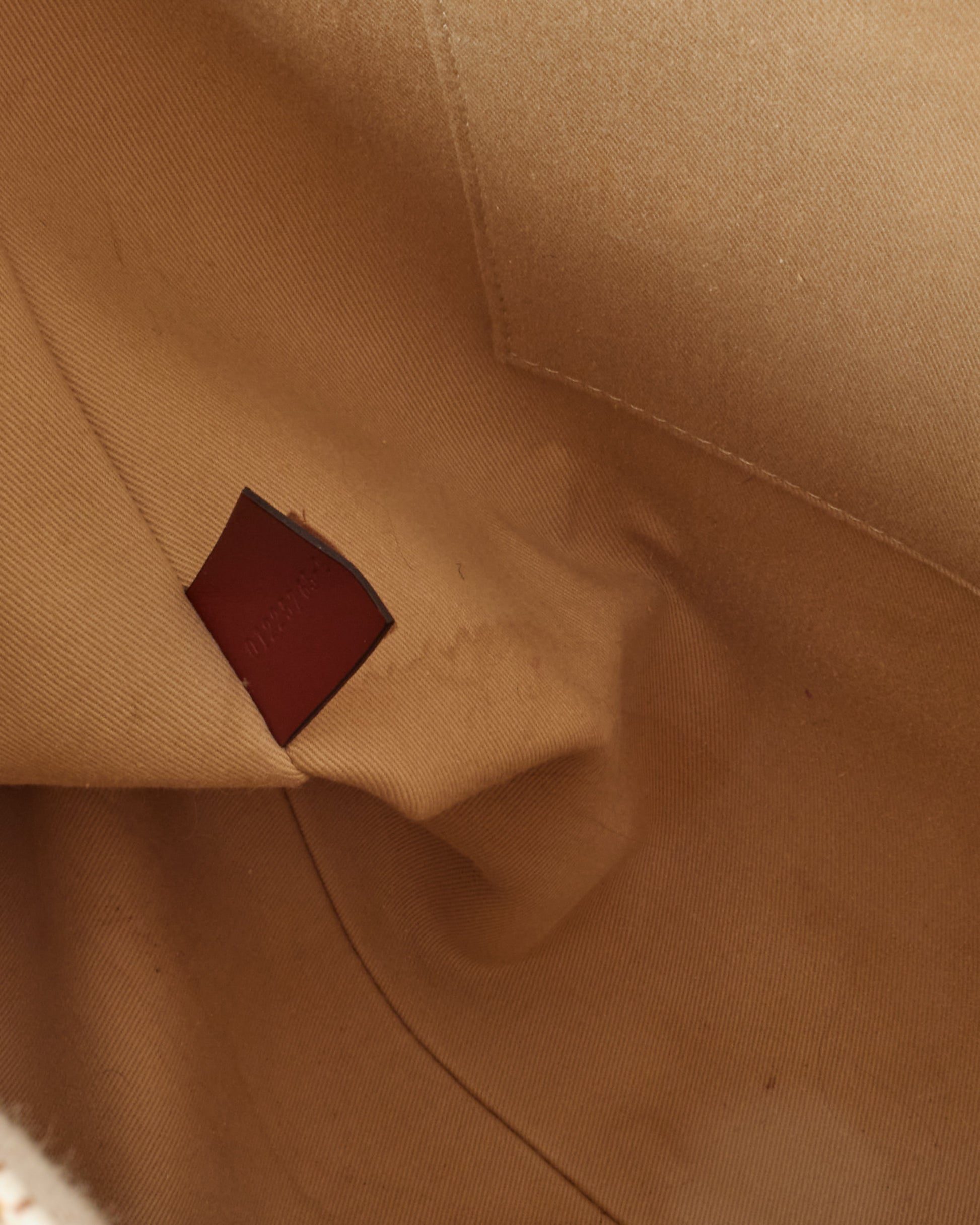 Effortlessly chic and instantly recognizable, the pre-owned authentic Chloé Beige Canvas & Brown Leather Trim Large Woody Tote Bag is the perfect blend of relaxed luxury and everyday functionality. Crafted from durable beige canvas with rich brown leather trim, this spacious tote features the brand’s iconic Chloé logo ribbon handles for a signature finish. The open top design reveals a roomy interior with a slip pocket—ideal for travel, work, or day-to-day errands.