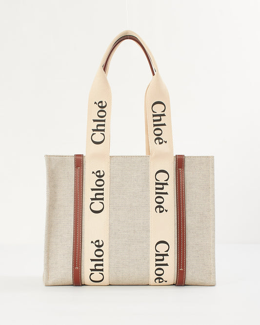 Beige Canvas Woody Medium Tote Bag