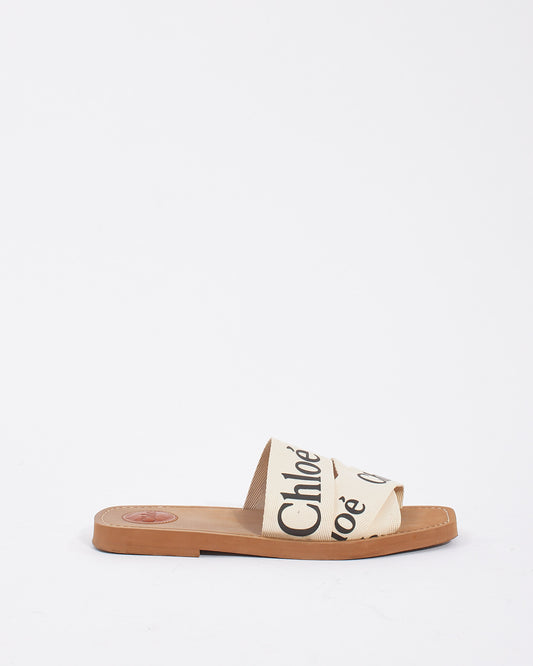 White/Tan Woody Logo Sandals - 40