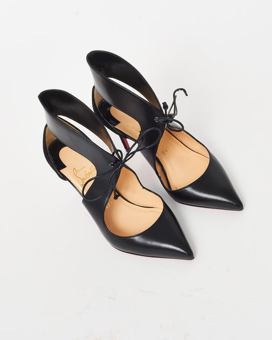 Black Leather Ferme Rouge 100mm Lace Up Pumps - 36