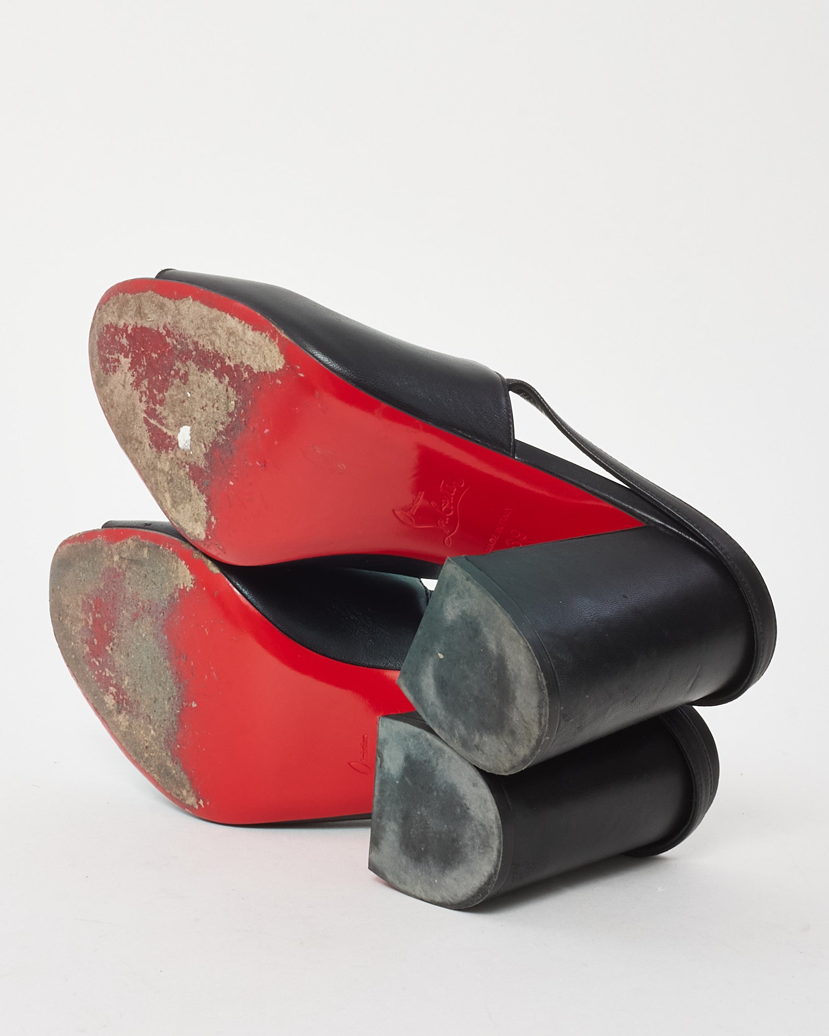A statement of effortless elegance, these pre-loved authentic Christian Louboutin Pigasling 85mm Block Heel Sandals are crafted from smooth black nappa leather and designed with a sleek open-toe silhouette. Featuring a chic block heel, delicate slingback straps, and the brand’s iconic red lacquered sole, these sandals perfectly balance sophistication and comfort. Ideal for day-to-night styling, they elevate any ensemble with timeless Parisian allure.