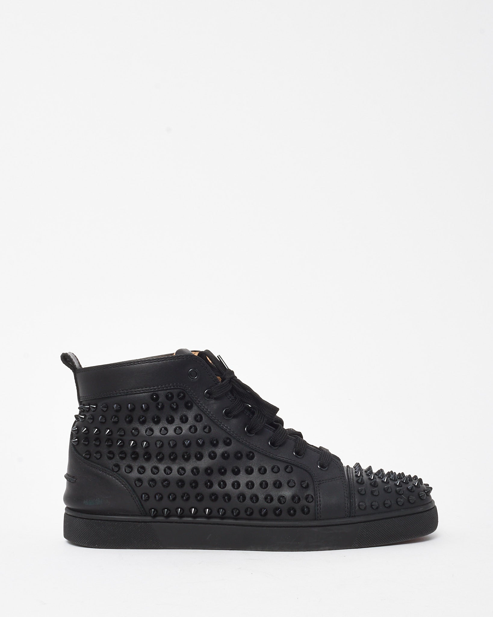 Men's Black Calf Leather Louis Spike High-Top Sneakers - 45 MEN