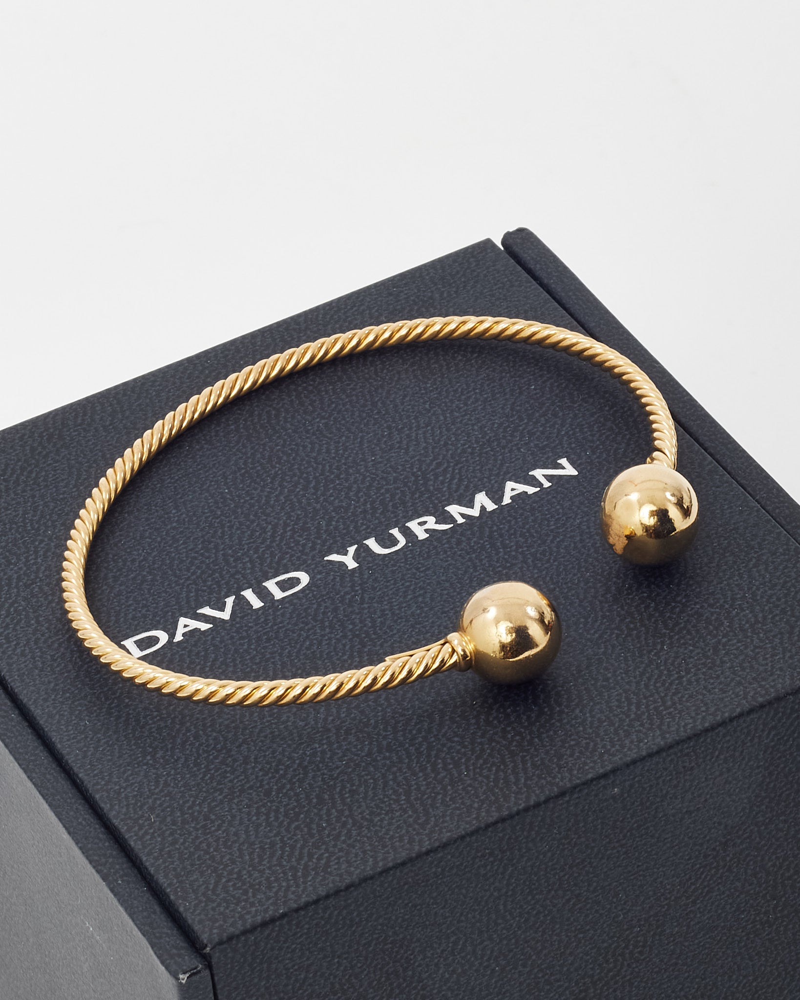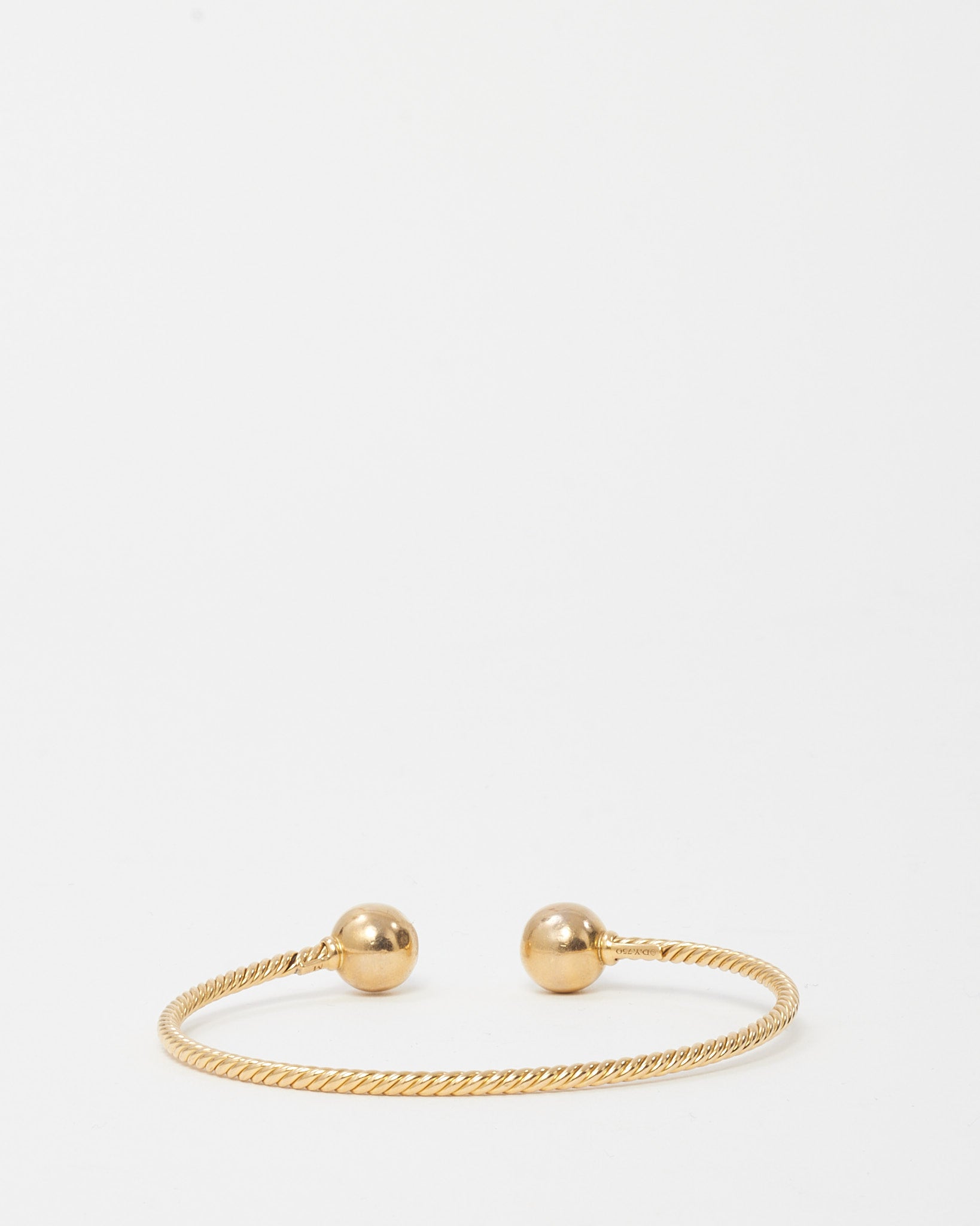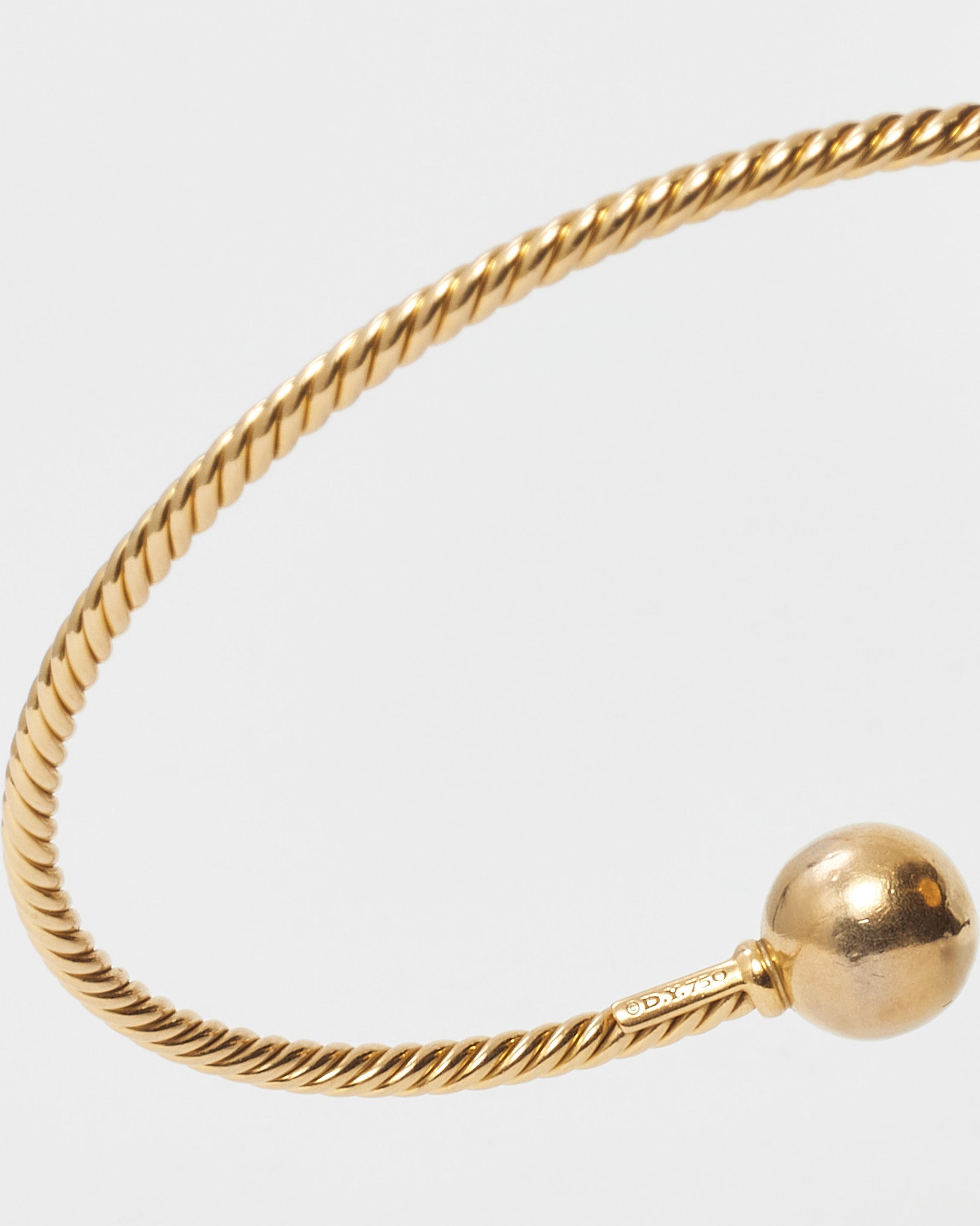 Elevate your fine jewelry collection with this pre-loved authentic David Yurman Solari Cablespira bracelet, meticulously crafted in 18K yellow gold. Featuring the brand’s signature twisted cable design, this slender 2.6MM bracelet is accented with polished gold domes at each end, offering a refined yet modern aesthetic. Perfect worn solo or stacked, it brings timeless sophistication and sculptural elegance to any ensemble.
