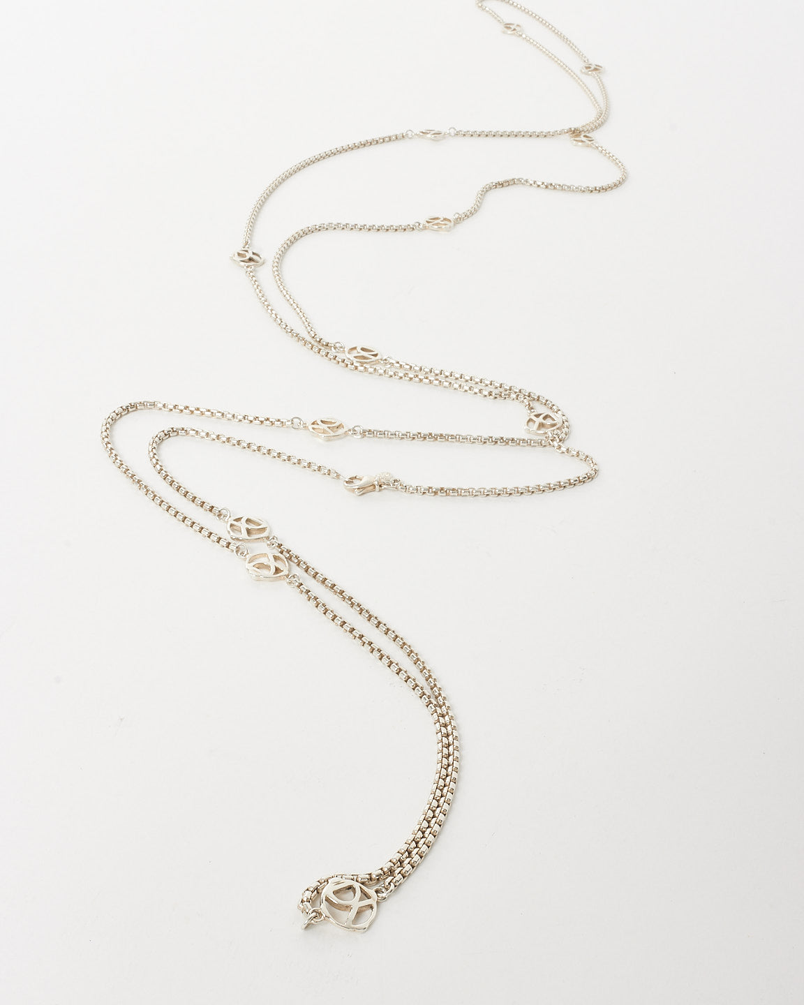 Sterling Silver DY Logo Station Double Wrap Necklace 72"