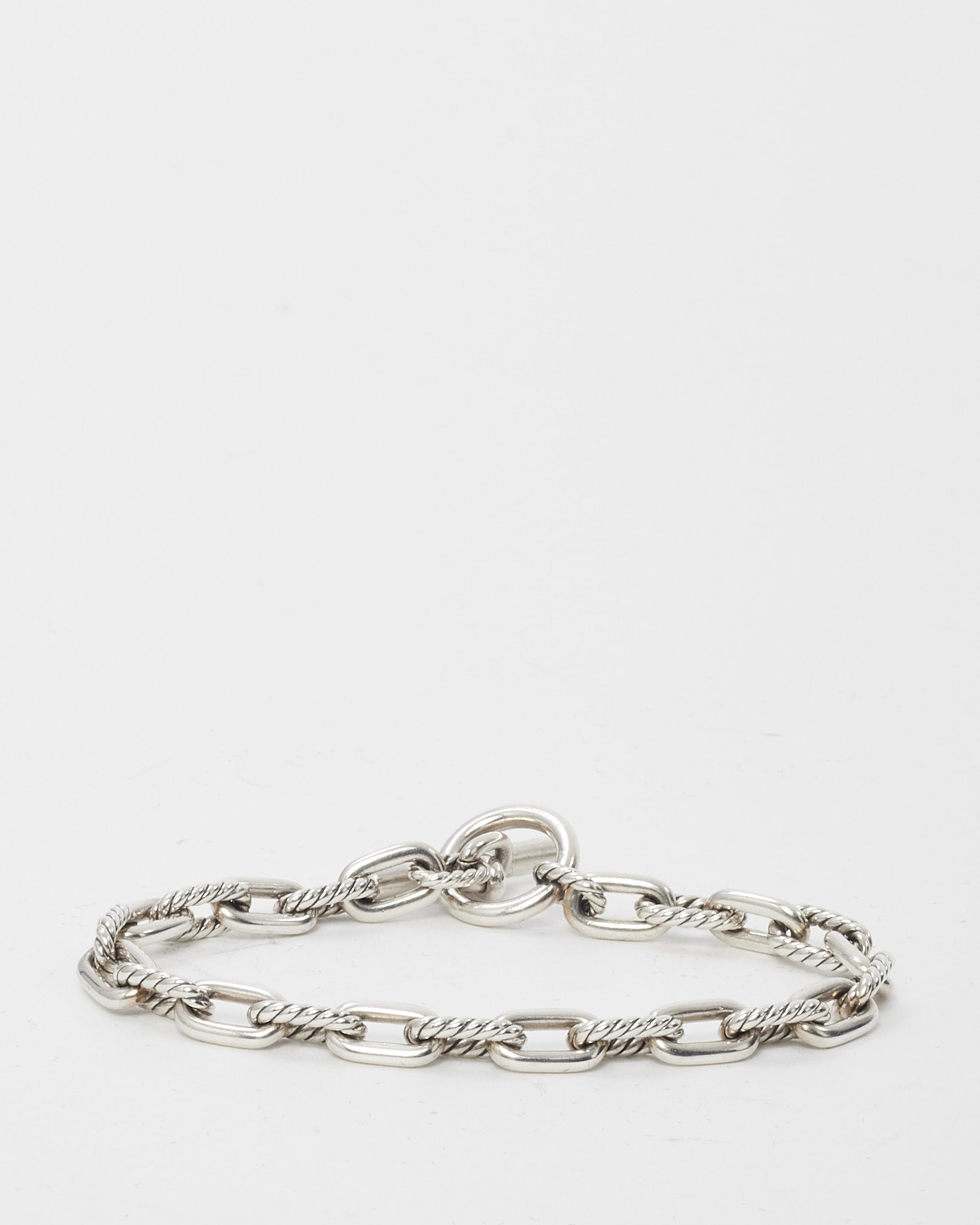 Add a bold yet timeless touch to your jewelry collection with this pre-loved authentic David Yurman Sterling Silver DY Madison Toggle Chain Bracelet. Featuring the brand’s signature twisted cable links, this bracelet is crafted in bright sterling silver with a chunky silhouette that balances strength and sophistication. The sculptural toggle clasp adds a modern edge and secure closure, making it ideal for everyday wear or layering with other favorites. A statement piece that captures David Yurman’s distinctive fusion of art and design.