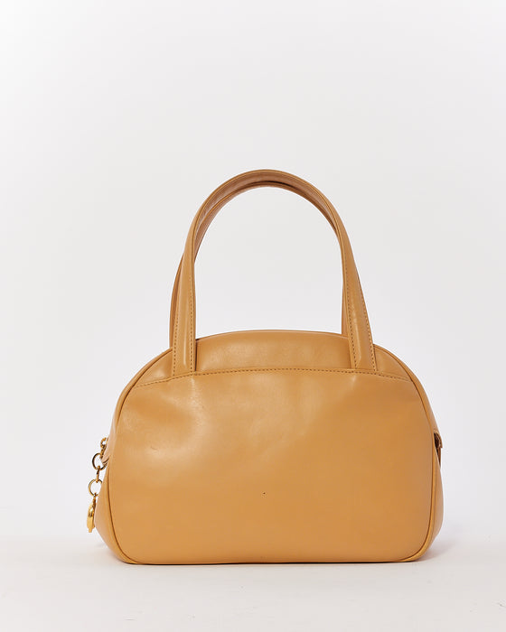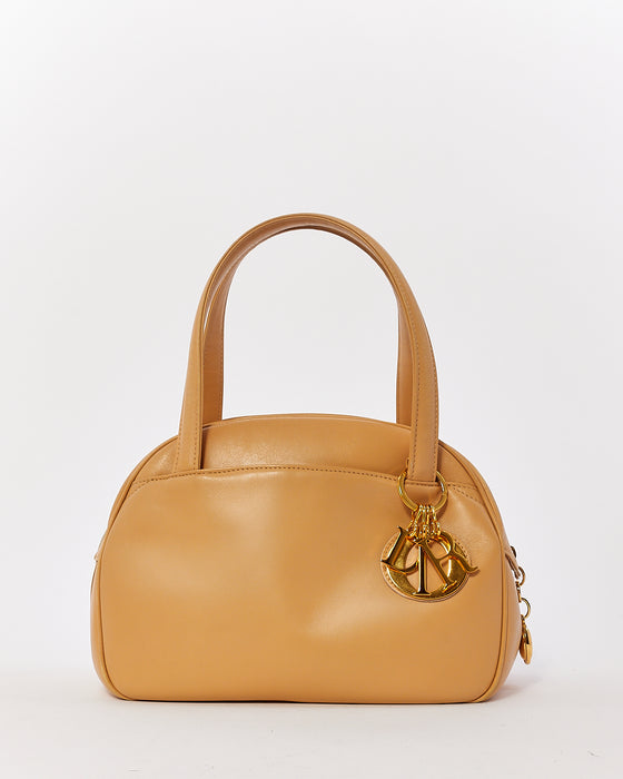 Vintage Beige Leather Top Handle Bag with Dior Charm