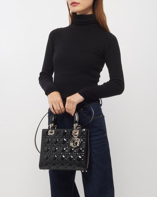 Black Cannage Patent Leather Medium Lady Dior Bag