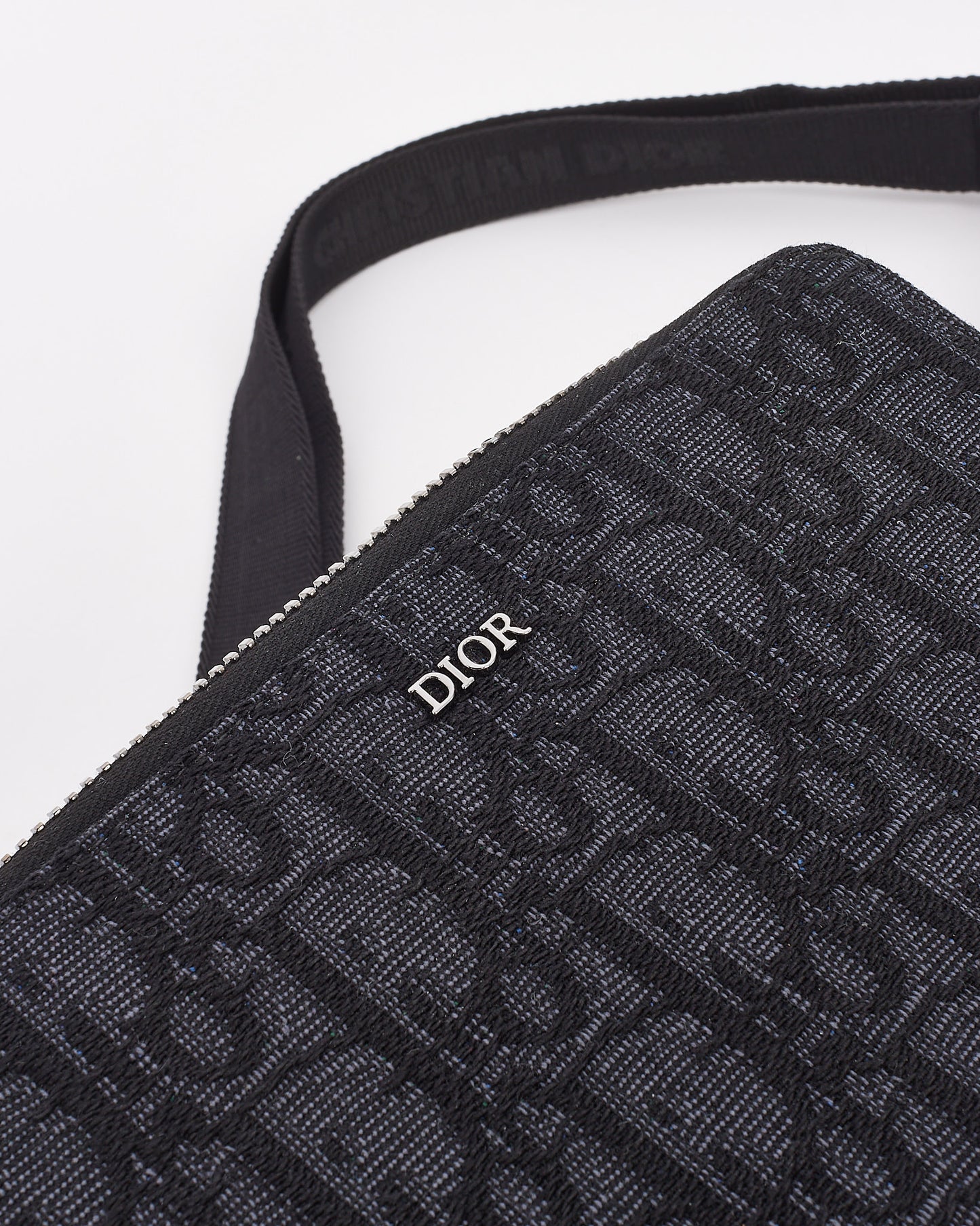Black Canvas Oblique Jacquard Pouch with Strap